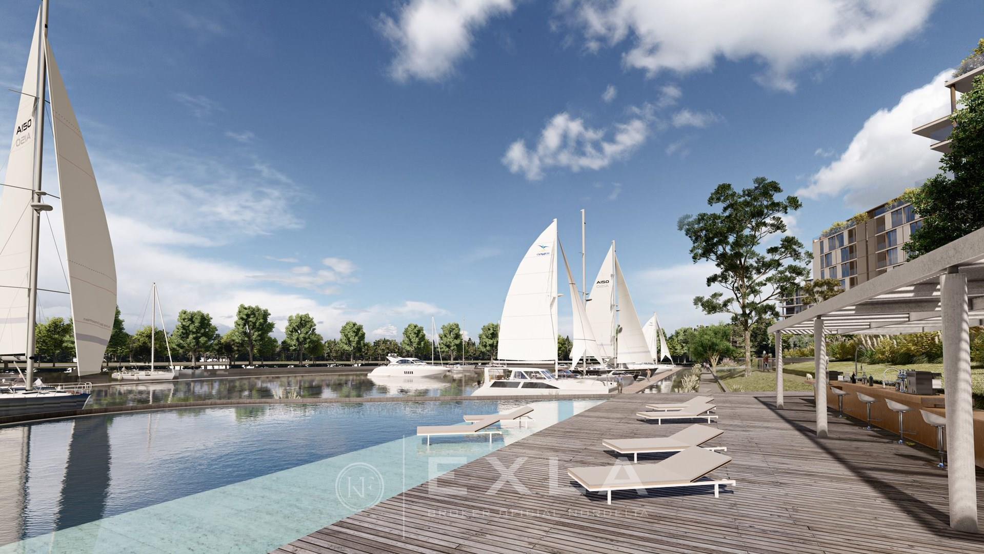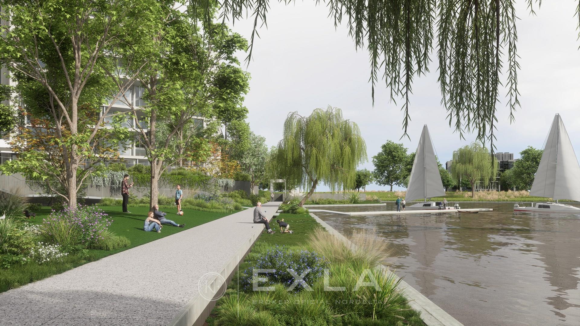 Indigo es un desarrollo de 5 edificios en el área ribereña de la ciudad de Nordelta, rodeado de trescientos metros de costa de río, con vistas a la bahía y al canal mayor