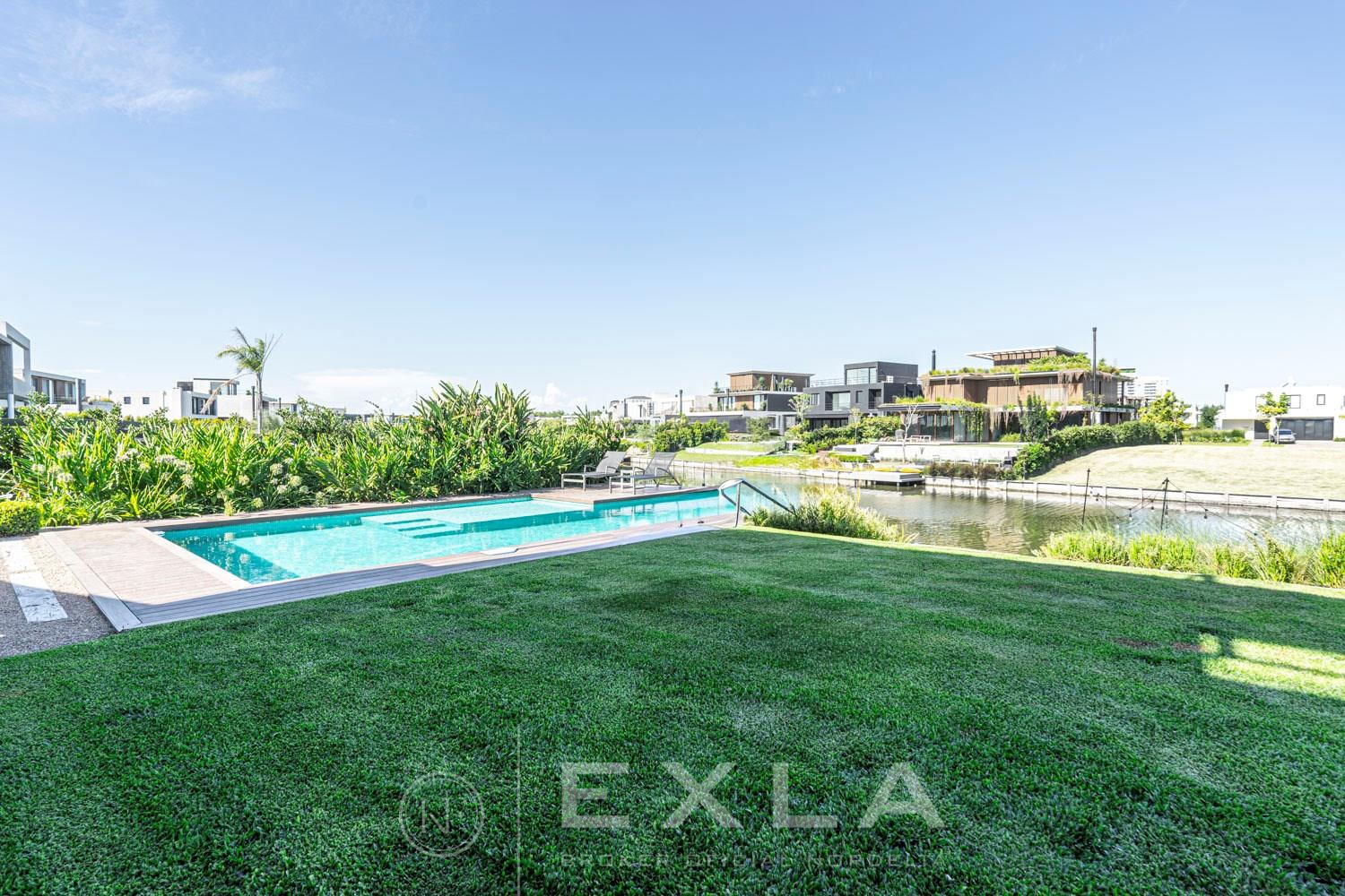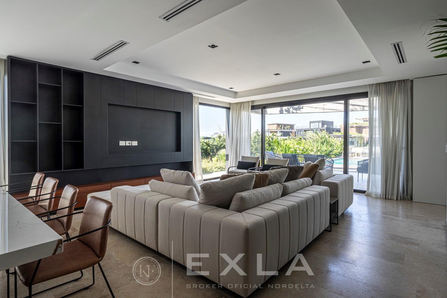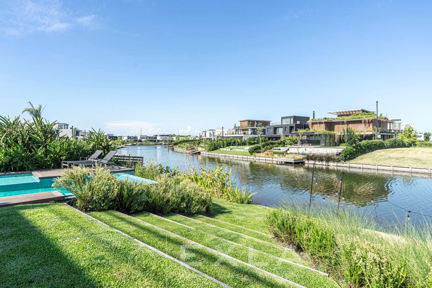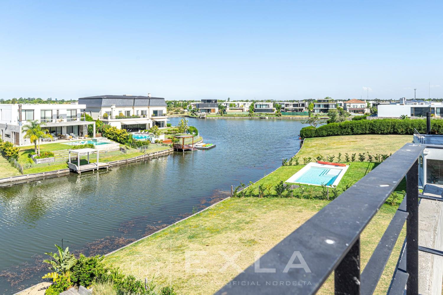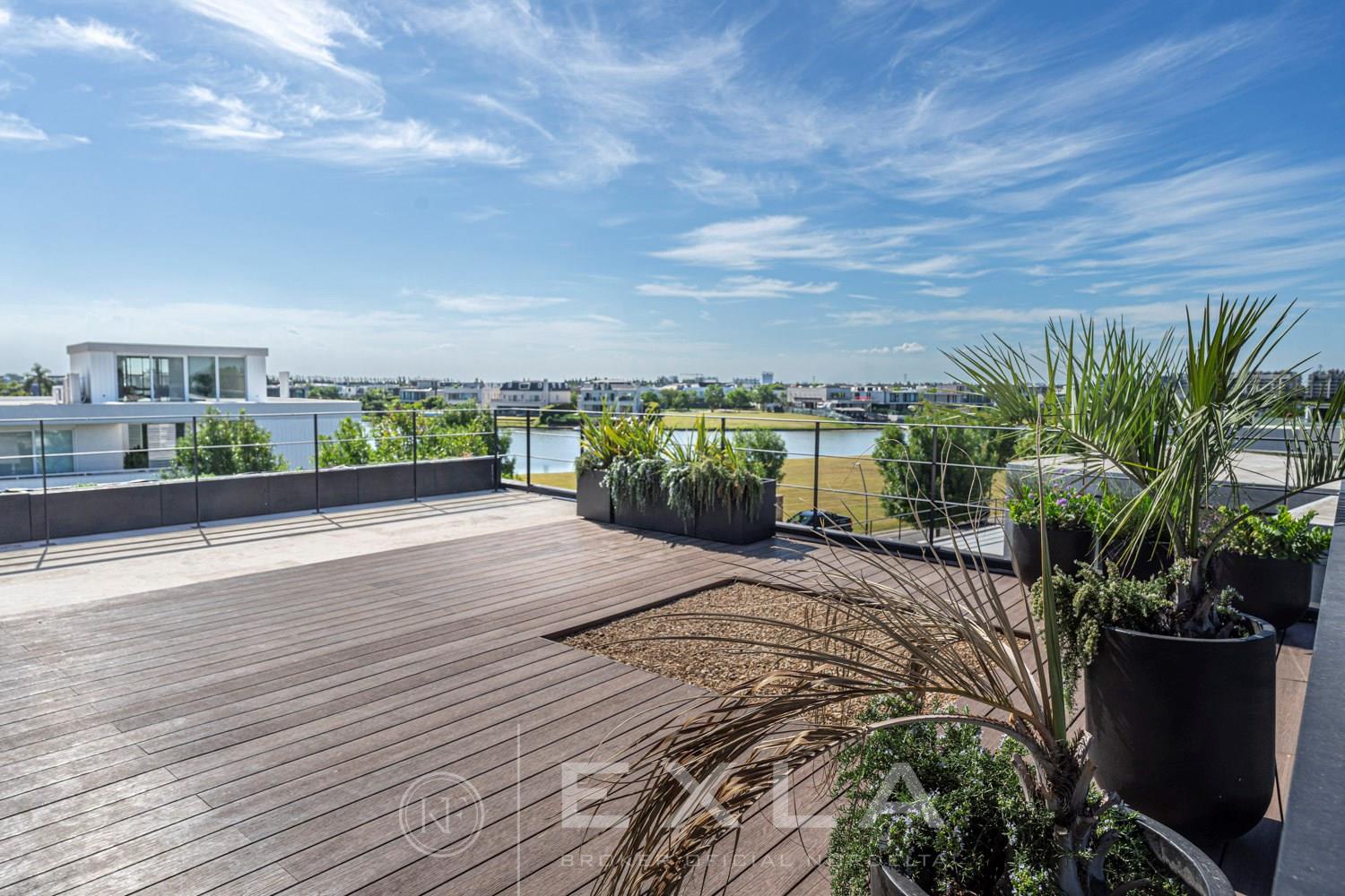 ESPECTACULAR CASA MODERAN AL LAGO. VENTA Y ALQUILER CON O SIN MUEBLES! Orientación E. Planta Baja: Hall de entrada. Toilette de recepción. Habitación de huéspedes. Living Comedor. Cocina con barra desayunador - Comedor diario. Family. Lavadero. Dependencia de servicio. Garage cubierto.Planta Alta: Master suite con baño compartimentado y gran vestidor. Suite junior. Dos dormitorios que comparten un baño. Family abierto con salida a la terraza. Tercer piso: Amplio lugar que puede ser utilizado como oficina, playroom, gimnasio etc. Exterior: Gran galería con cerramiento sistema reiki y parrilla que incluye un horno a gas Tromen con lugar para living y comedor. Jardín con riego y pileta revestida con venecita y con borde infinito. Sector de playa con arena. Calefacción por losa radiante. Equipo de aire acondicionado central frío/ calor. Dos calderas dual Baxi. Piso mármol travertino. Aberturas PVC negro doble vidrio (DVH). COTI en trámite a cargo del propietario. Martillero Publico CMCPSI 6692
