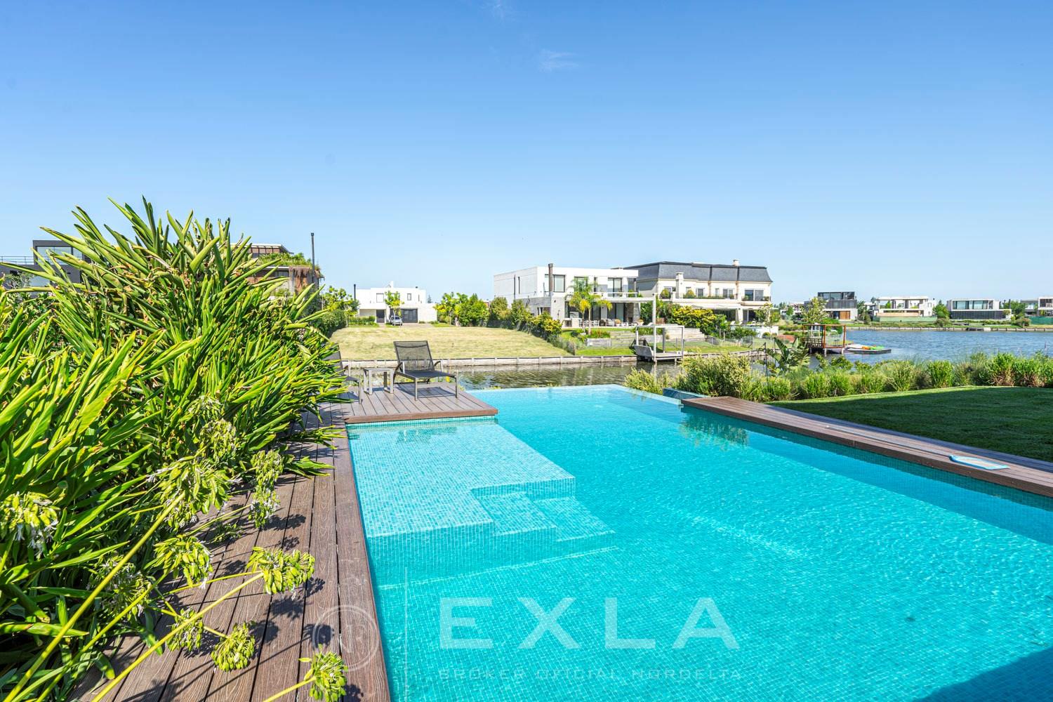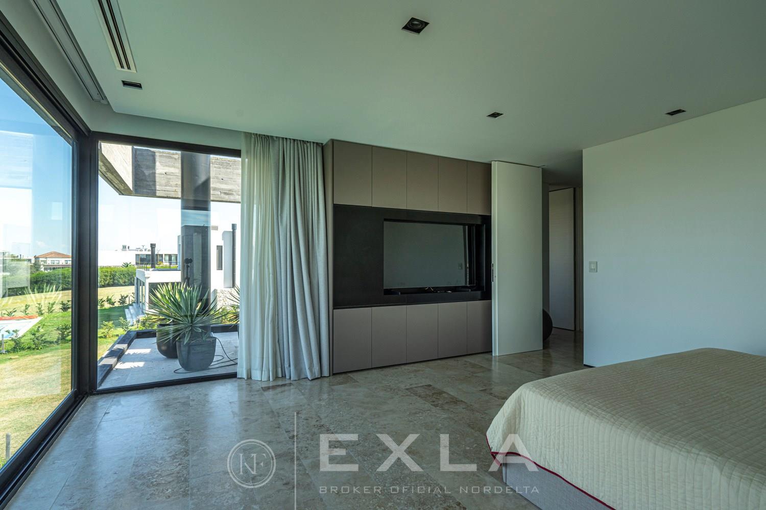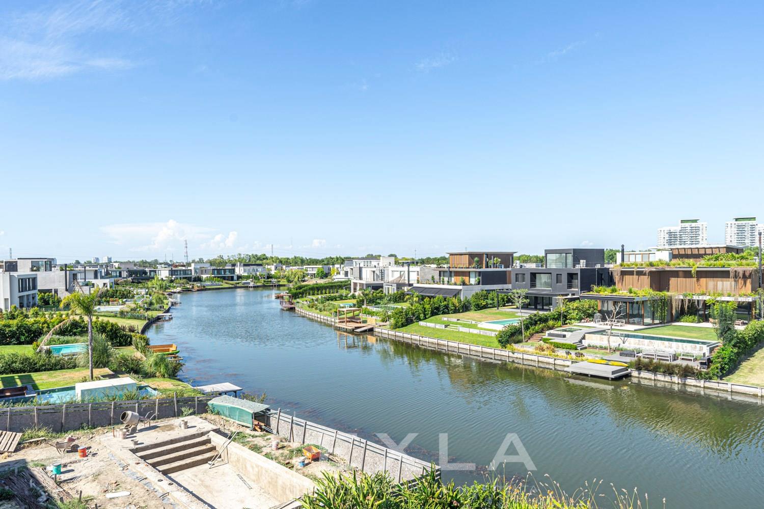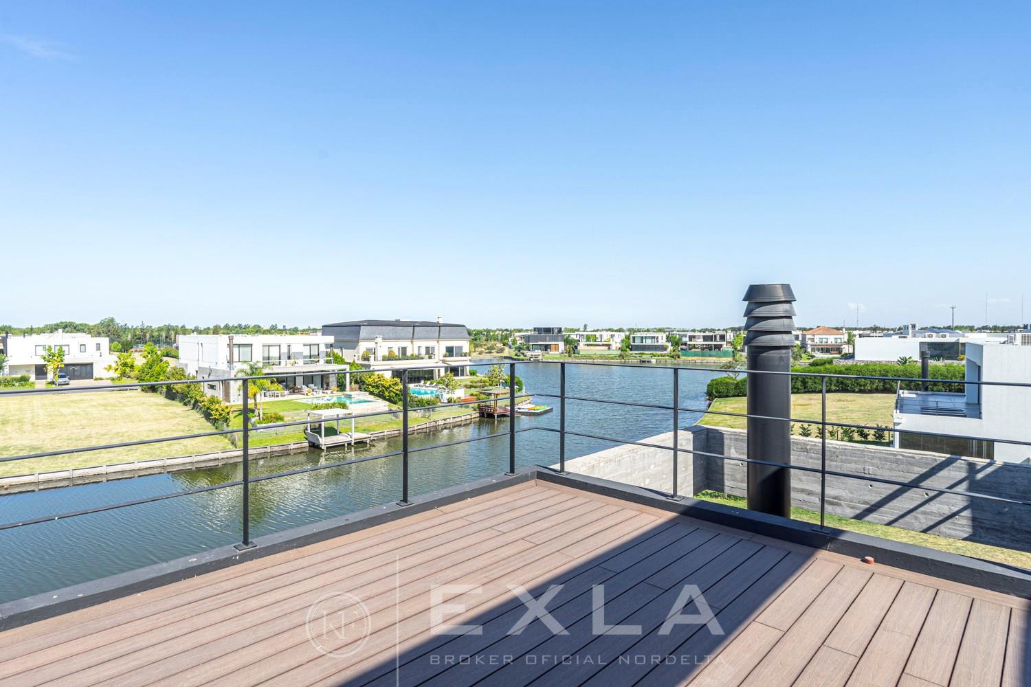 ESPECTACULAR CASA MODERAN AL LAGO. VENTA Y ALQUILER CON O SIN MUEBLES! Orientación E. Planta Baja: Hall de entrada. Toilette de recepción. Habitación de huéspedes. Living Comedor. Cocina con barra desayunador - Comedor diario. Family. Lavadero. Dependencia de servicio. Garage cubierto.Planta Alta: Master suite con baño compartimentado y gran vestidor. Suite junior. Dos dormitorios que comparten un baño. Family abierto con salida a la terraza. Tercer piso: Amplio lugar que puede ser utilizado como oficina, playroom, gimnasio etc. Exterior: Gran galería con cerramiento sistema reiki y parrilla que incluye un horno a gas Tromen con lugar para living y comedor. Jardín con riego y pileta revestida con venecita y con borde infinito. Sector de playa con arena. Calefacción por losa radiante. Equipo de aire acondicionado central frío/ calor. Dos calderas dual Baxi. Piso mármol travertino. Aberturas PVC negro doble vidrio (DVH). COTI en trámite a cargo del propietario. Martillero Publico CMCPSI 6692