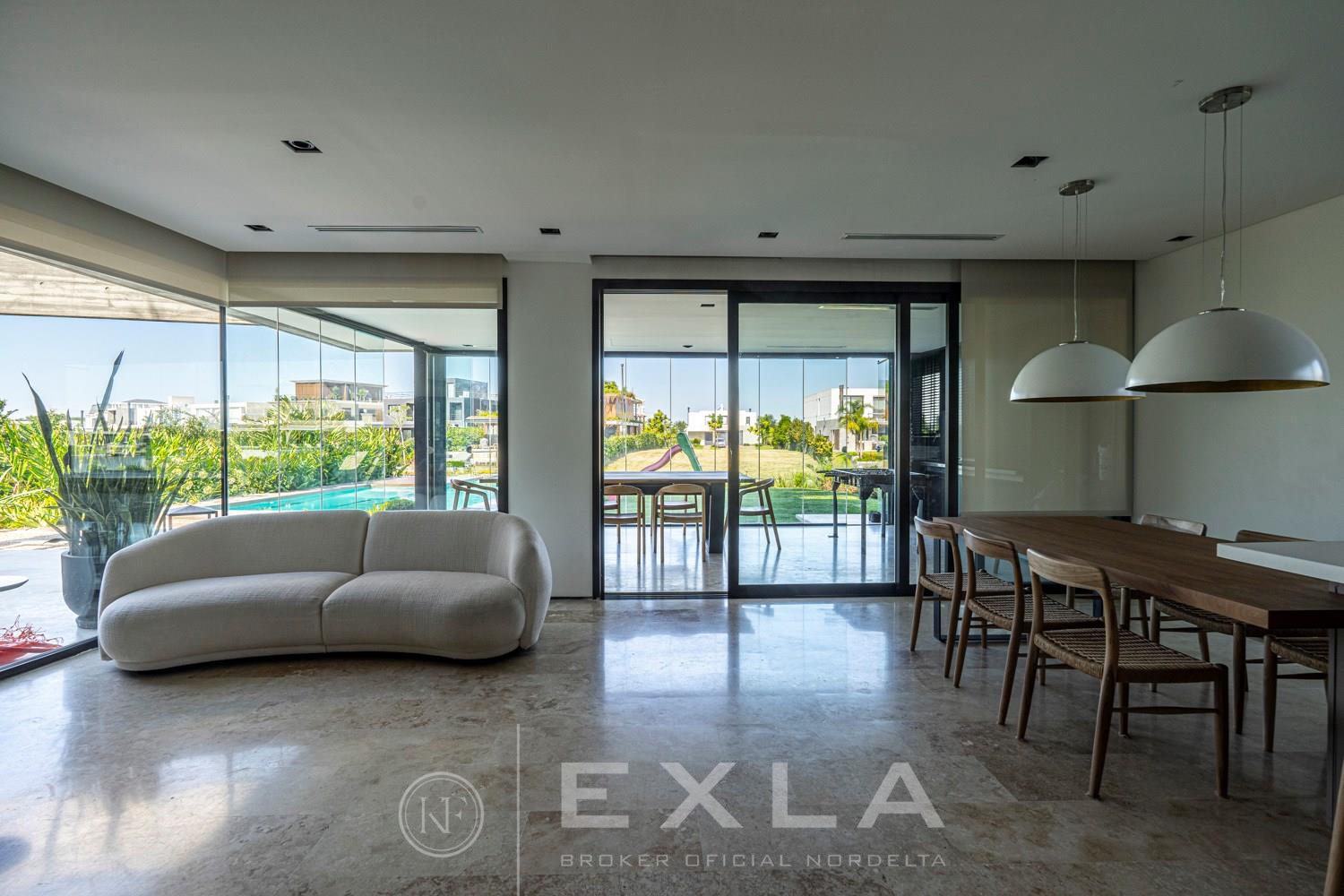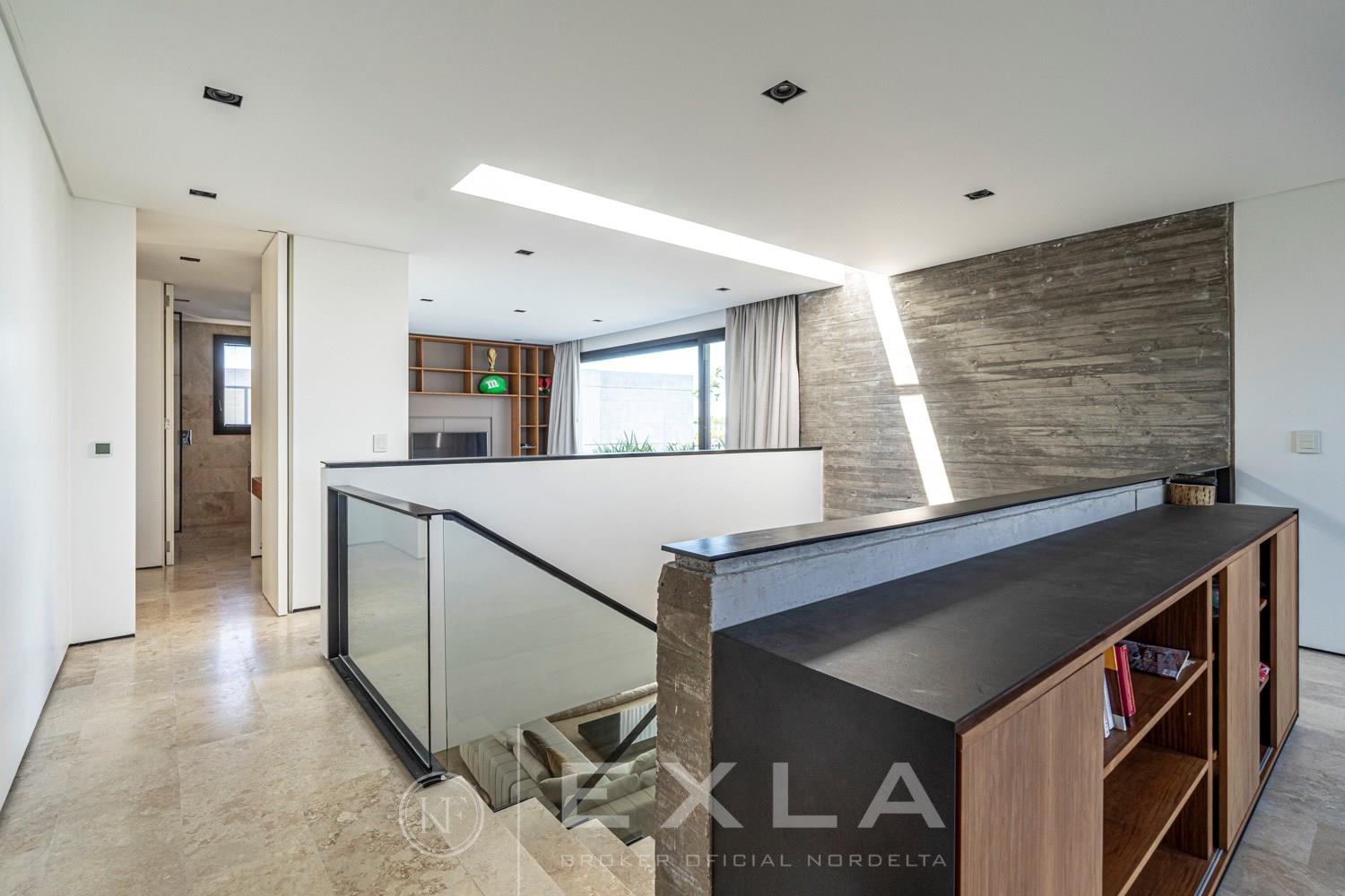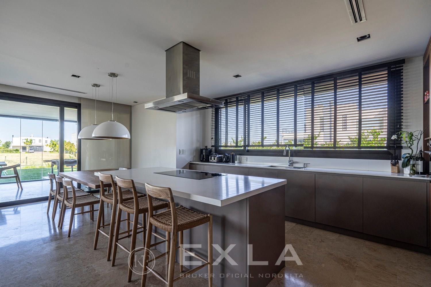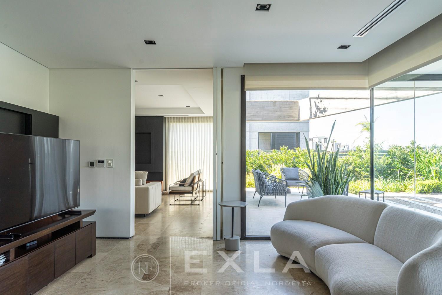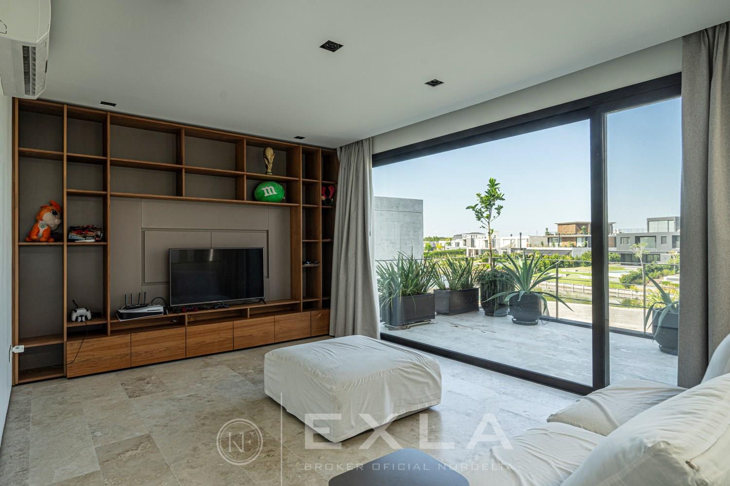 ESPECTACULAR CASA MODERAN AL LAGO. VENTA Y ALQUILER CON O SIN MUEBLES! Orientación E. Planta Baja: Hall de entrada. Toilette de recepción. Habitación de huéspedes. Living Comedor. Cocina con barra desayunador - Comedor diario. Family. Lavadero. Dependencia de servicio. Garage cubierto.Planta Alta: Master suite con baño compartimentado y gran vestidor. Suite junior. Dos dormitorios que comparten un baño. Family abierto con salida a la terraza. Tercer piso: Amplio lugar que puede ser utilizado como oficina, playroom, gimnasio etc. Exterior: Gran galería con cerramiento sistema reiki y parrilla que incluye un horno a gas Tromen con lugar para living y comedor. Jardín con riego y pileta revestida con venecita y con borde infinito. Sector de playa con arena. Calefacción por losa radiante. Equipo de aire acondicionado central frío/ calor. Dos calderas dual Baxi. Piso mármol travertino. Aberturas PVC negro doble vidrio (DVH). COTI en trámite a cargo del propietario. Martillero Publico CMCPSI 6692