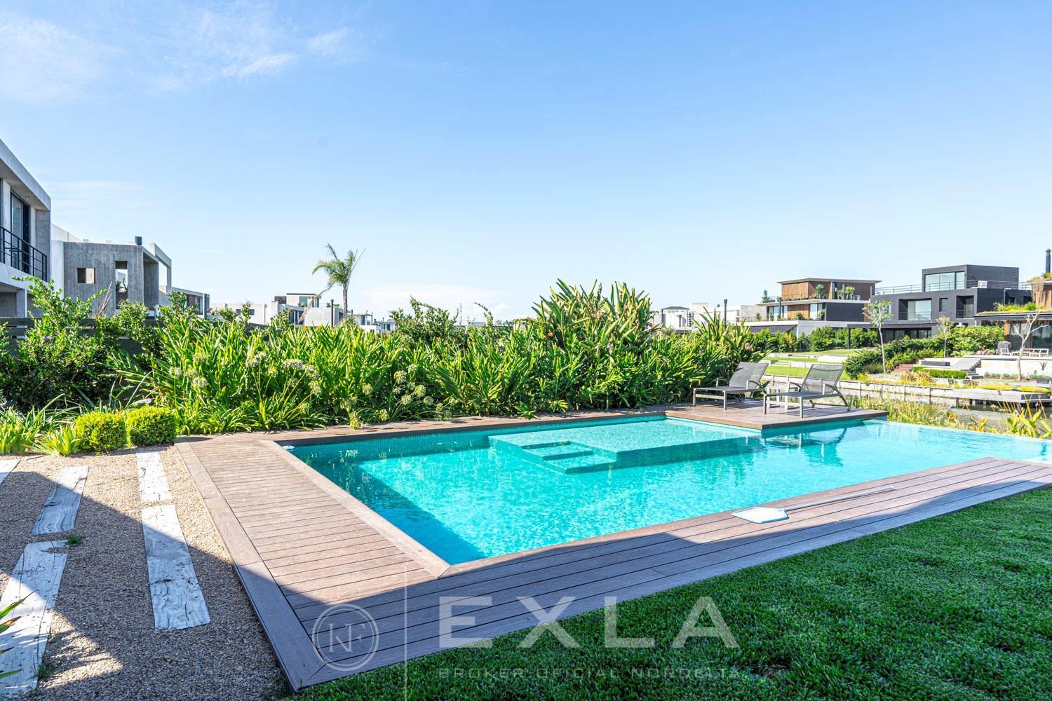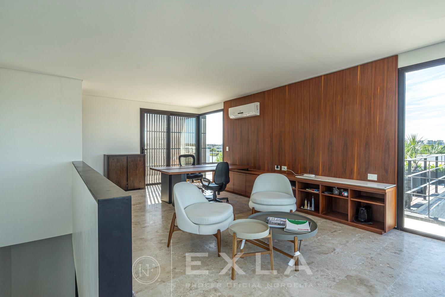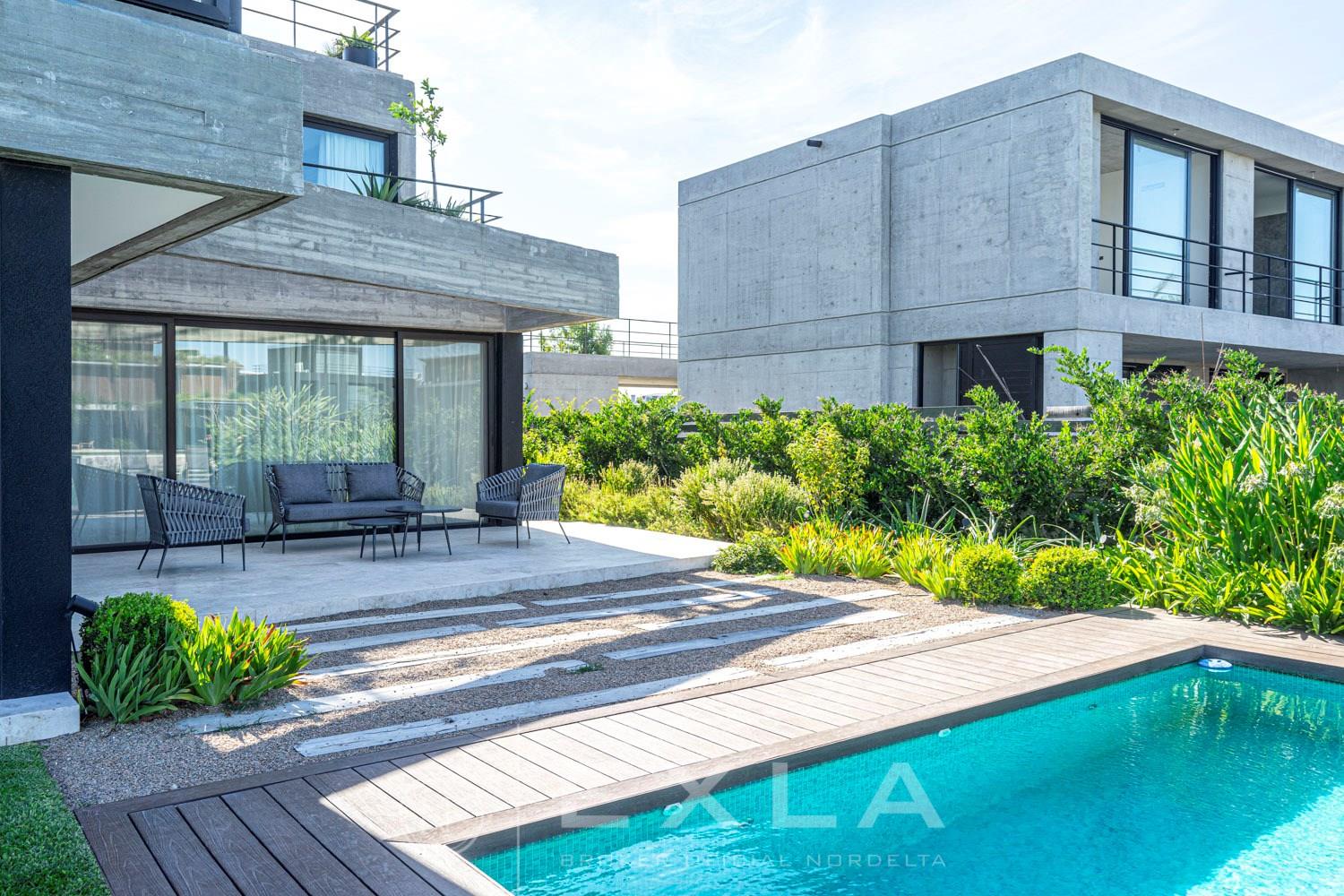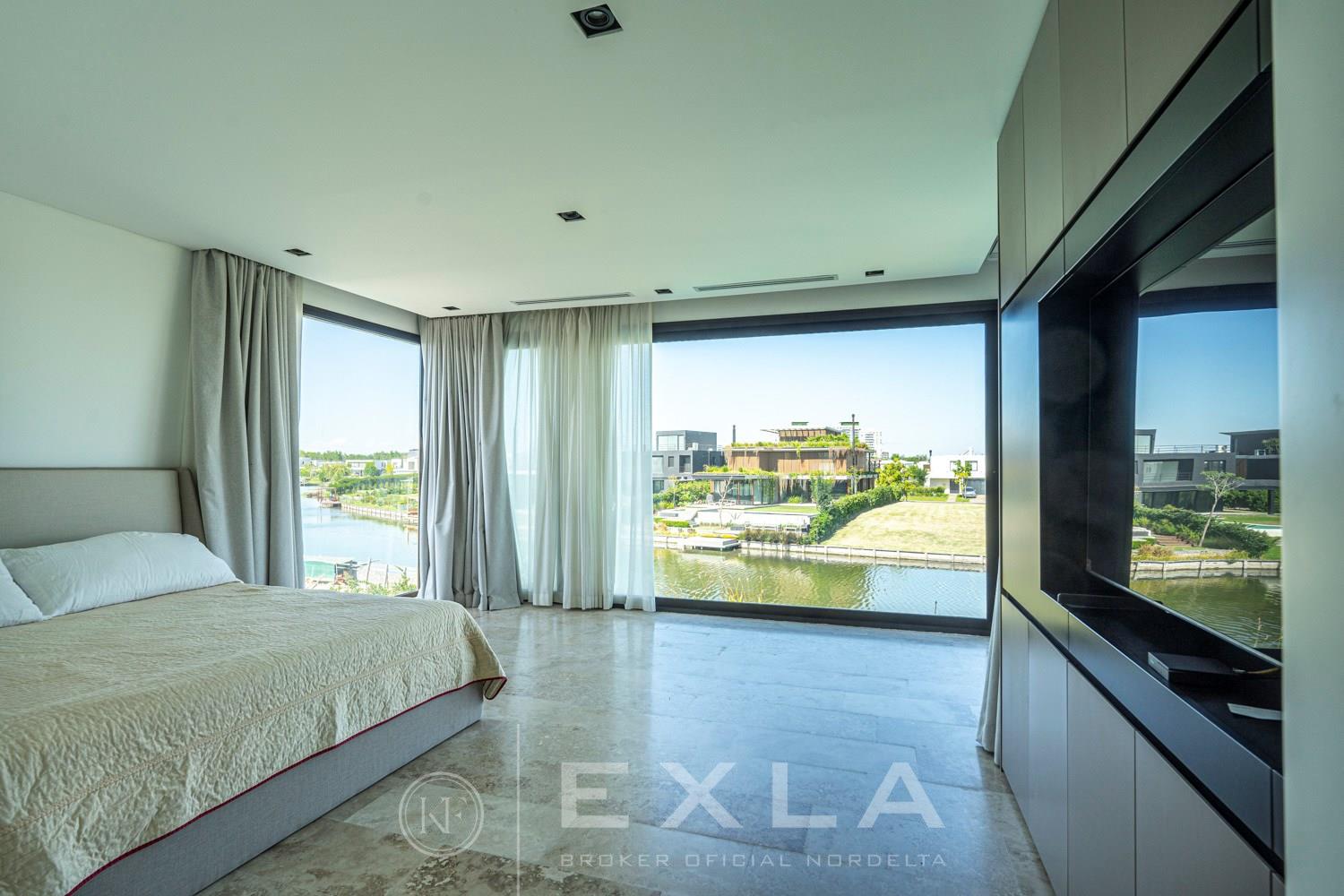 ESPECTACULAR CASA MODERAN AL LAGO. VENTA Y ALQUILER CON O SIN MUEBLES! Orientación E. Planta Baja: Hall de entrada. Toilette de recepción. Habitación de huéspedes. Living Comedor. Cocina con barra desayunador - Comedor diario. Family. Lavadero. Dependencia de servicio. Garage cubierto.Planta Alta: Master suite con baño compartimentado y gran vestidor. Suite junior. Dos dormitorios que comparten un baño. Family abierto con salida a la terraza. Tercer piso: Amplio lugar que puede ser utilizado como oficina, playroom, gimnasio etc. Exterior: Gran galería con cerramiento sistema reiki y parrilla que incluye un horno a gas Tromen con lugar para living y comedor. Jardín con riego y pileta revestida con venecita y con borde infinito. Sector de playa con arena. Calefacción por losa radiante. Equipo de aire acondicionado central frío/ calor. Dos calderas dual Baxi. Piso mármol travertino. Aberturas PVC negro doble vidrio (DVH). COTI en trámite a cargo del propietario. Martillero Publico CMCPSI 6692