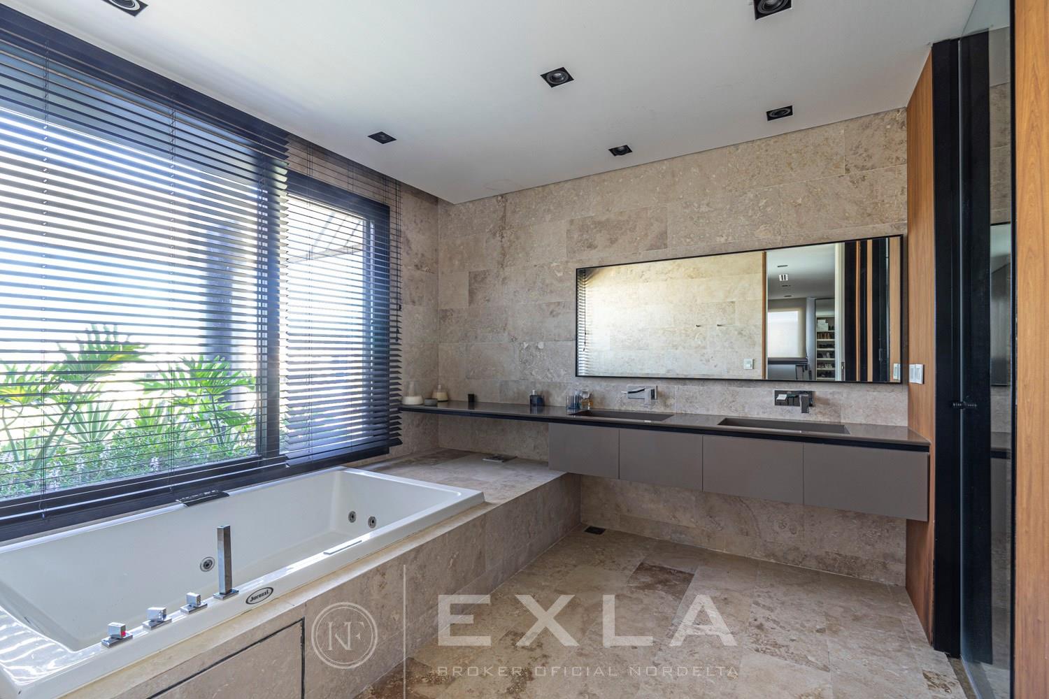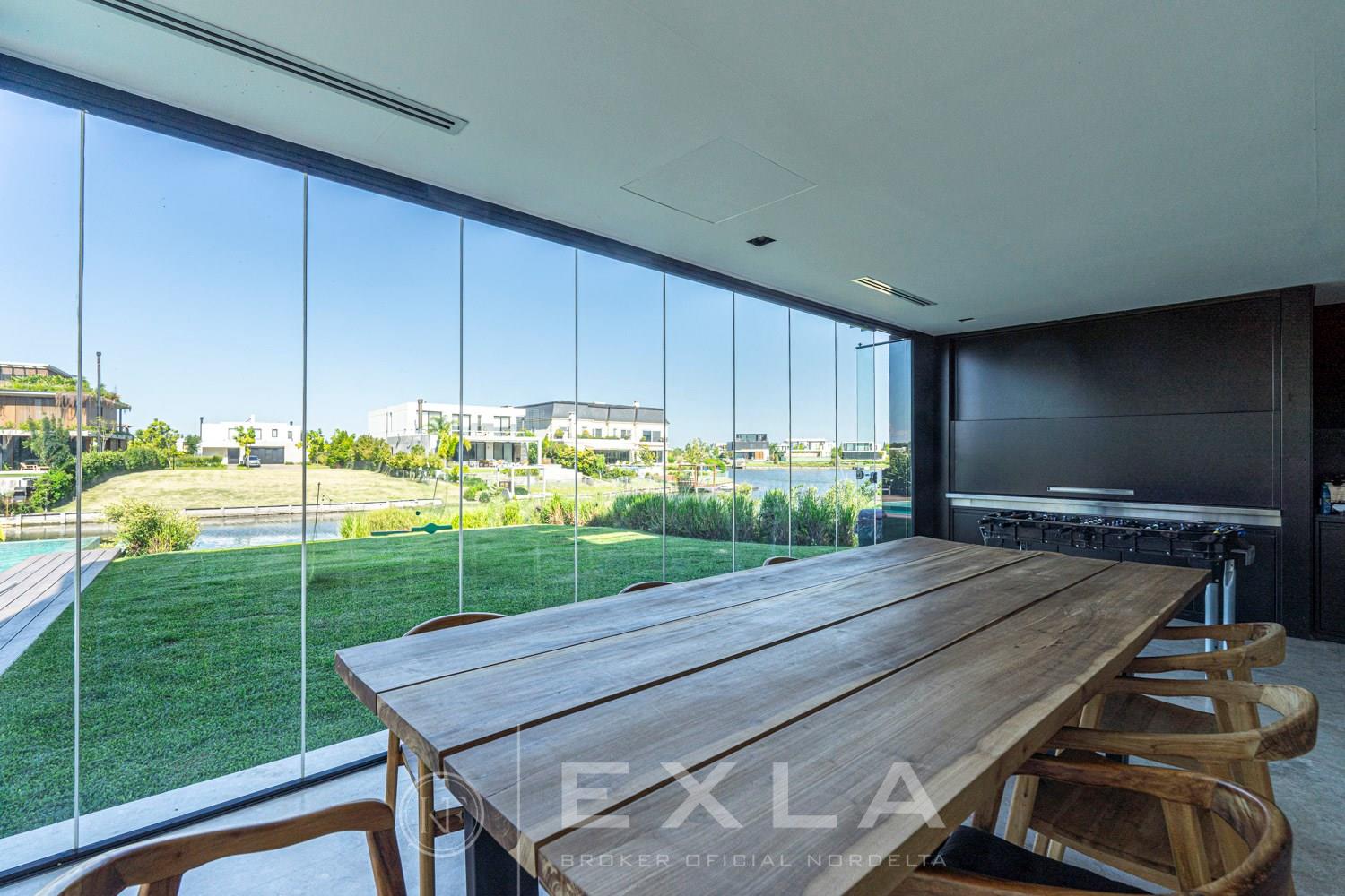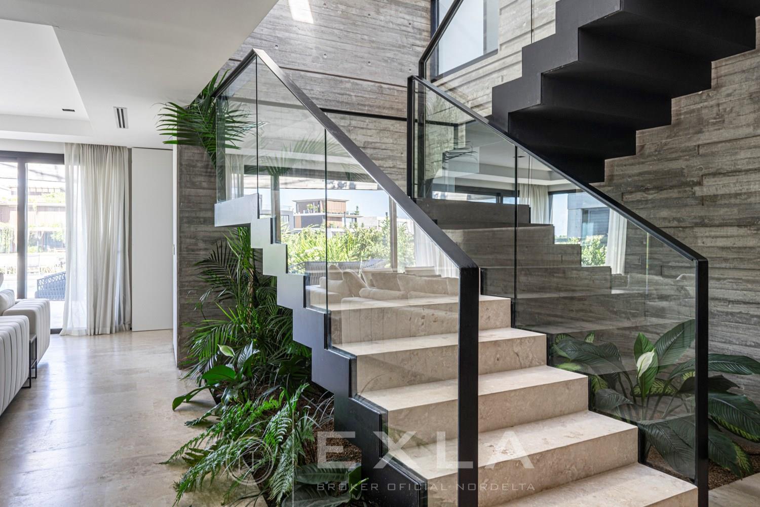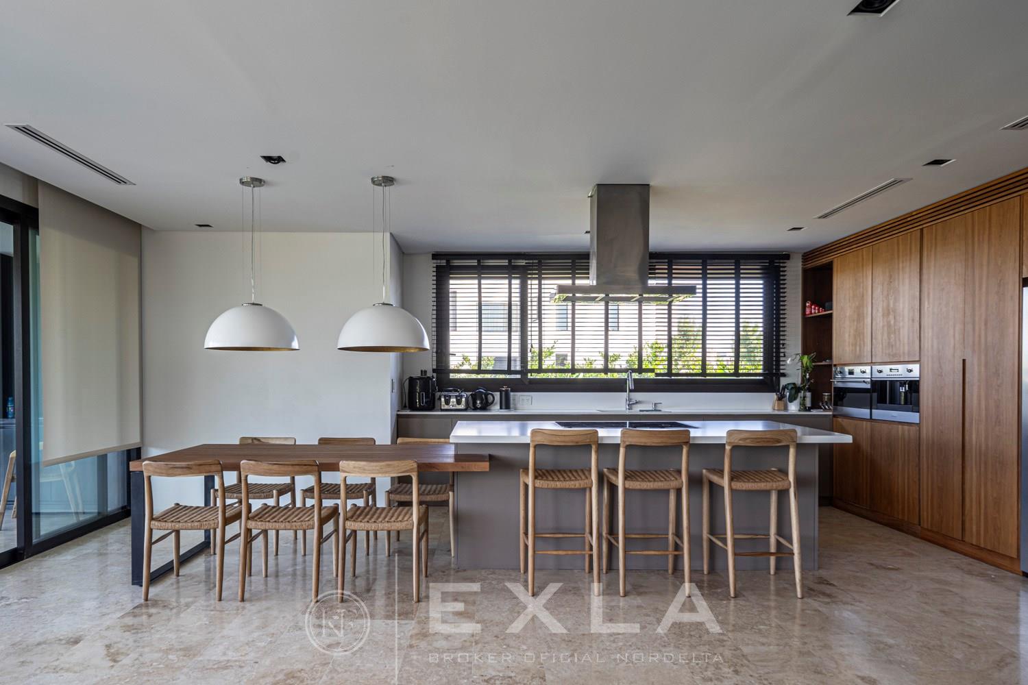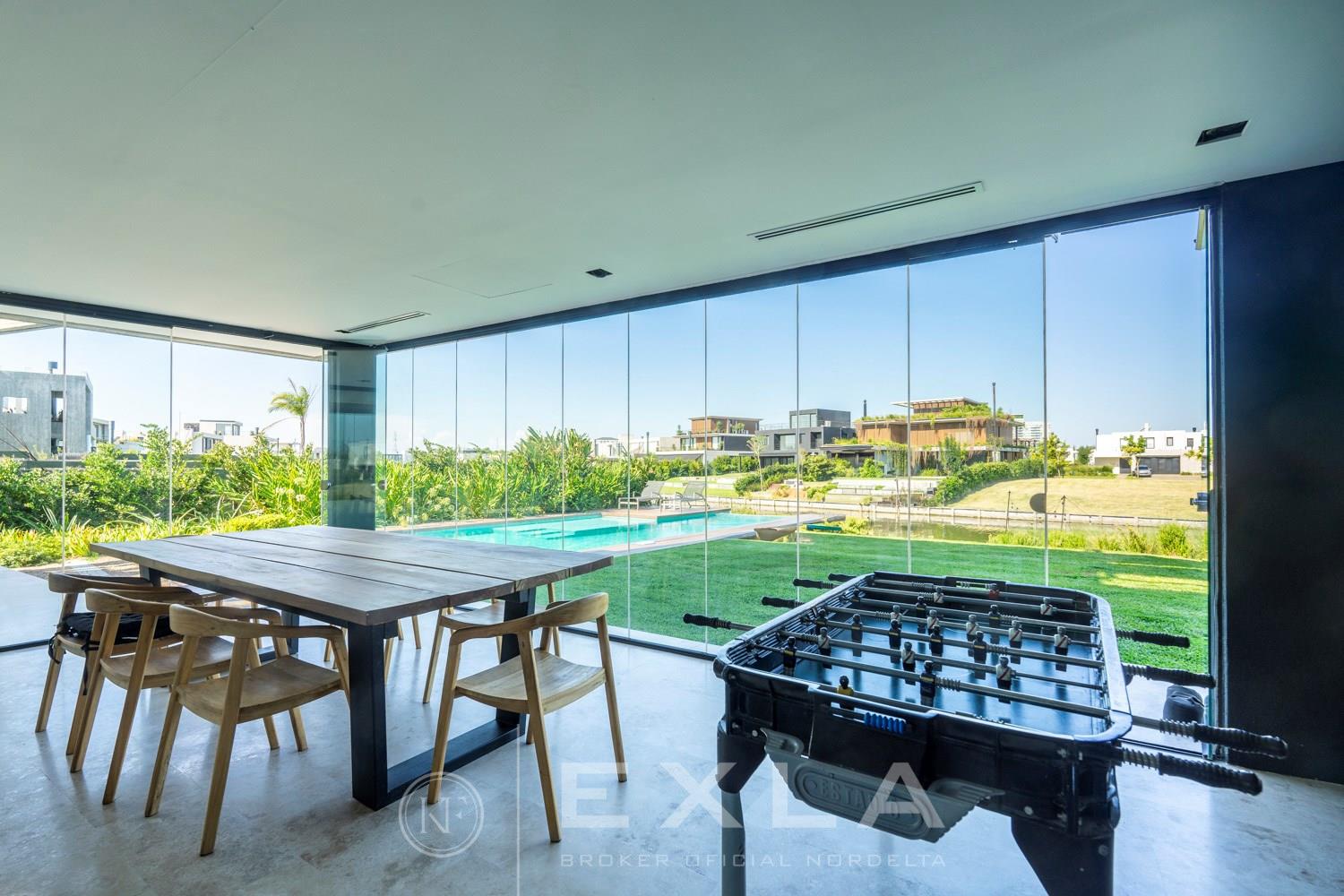 ESPECTACULAR CASA MODERAN AL LAGO. VENTA Y ALQUILER CON O SIN MUEBLES! Orientación E. Planta Baja: Hall de entrada. Toilette de recepción. Habitación de huéspedes. Living Comedor. Cocina con barra desayunador - Comedor diario. Family. Lavadero. Dependencia de servicio. Garage cubierto.Planta Alta: Master suite con baño compartimentado y gran vestidor. Suite junior. Dos dormitorios que comparten un baño. Family abierto con salida a la terraza. Tercer piso: Amplio lugar que puede ser utilizado como oficina, playroom, gimnasio etc. Exterior: Gran galería con cerramiento sistema reiki y parrilla que incluye un horno a gas Tromen con lugar para living y comedor. Jardín con riego y pileta revestida con venecita y con borde infinito. Sector de playa con arena. Calefacción por losa radiante. Equipo de aire acondicionado central frío/ calor. Dos calderas dual Baxi. Piso mármol travertino. Aberturas PVC negro doble vidrio (DVH). COTI en trámite a cargo del propietario. Martillero Publico CMCPSI 6692