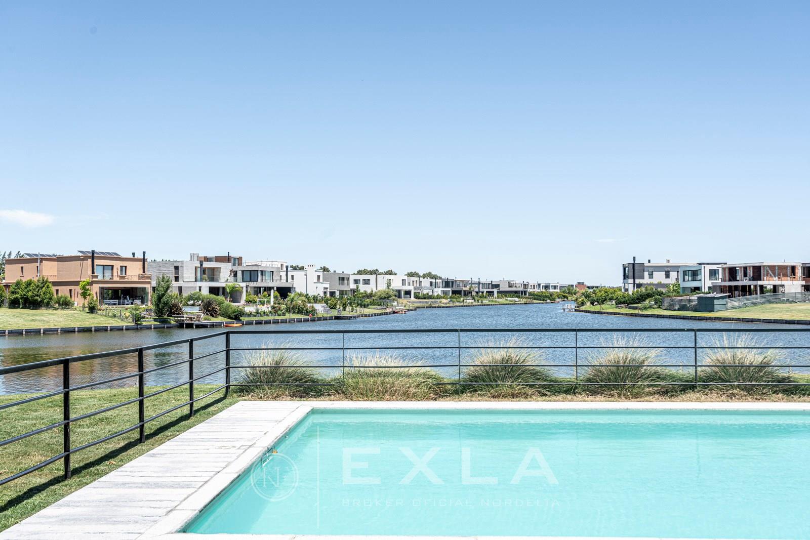 Divina Casa a estrenar de 300 metros cubiertos con 70 semicubiertos. Orientacion Este. Planta Alta: Hall de recepcion por patio interno. Toilette. Playroom o escritorio. Cocina con gran isla central. Lavadero y dependencia de servicio. Planta Alta: Suite Principal con vista al lago por el frente. Suite Junior. Dos dormitorios que comparten un baño. Exterior: Amplia galeria del ancho total de la casa. Parrilla revestida en inoxidable negro. Baño de pileta exterior. Riego. Pileta revestida en marmol tundra. Parquizacion completa. Garage para dos autos techado con pergola. Aires Acondicionados en todos los ambientes. Aberturas foliadas en PVC. DVH con camara de aire. Mosquiteros. Calefaccion por losa radiante. COTI en trámite a cargo del propietario. Martillero Publico CMCPSI 6692