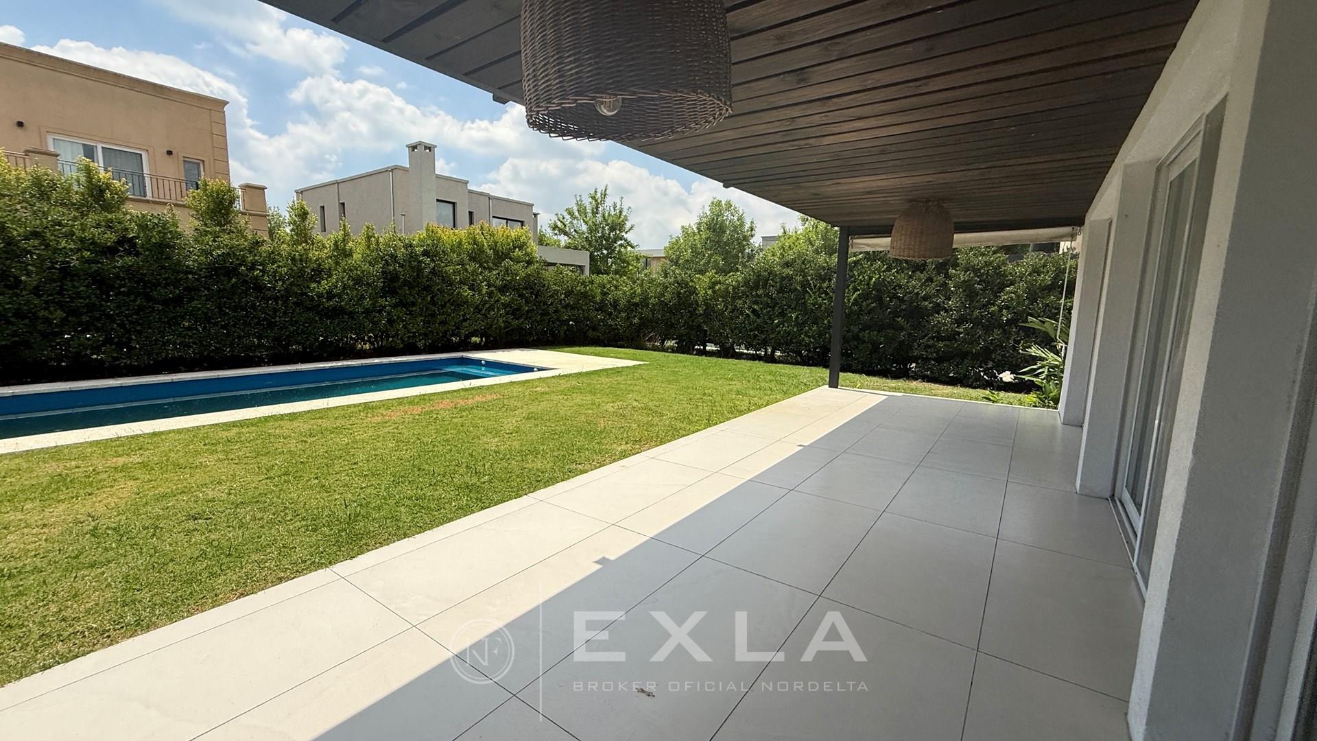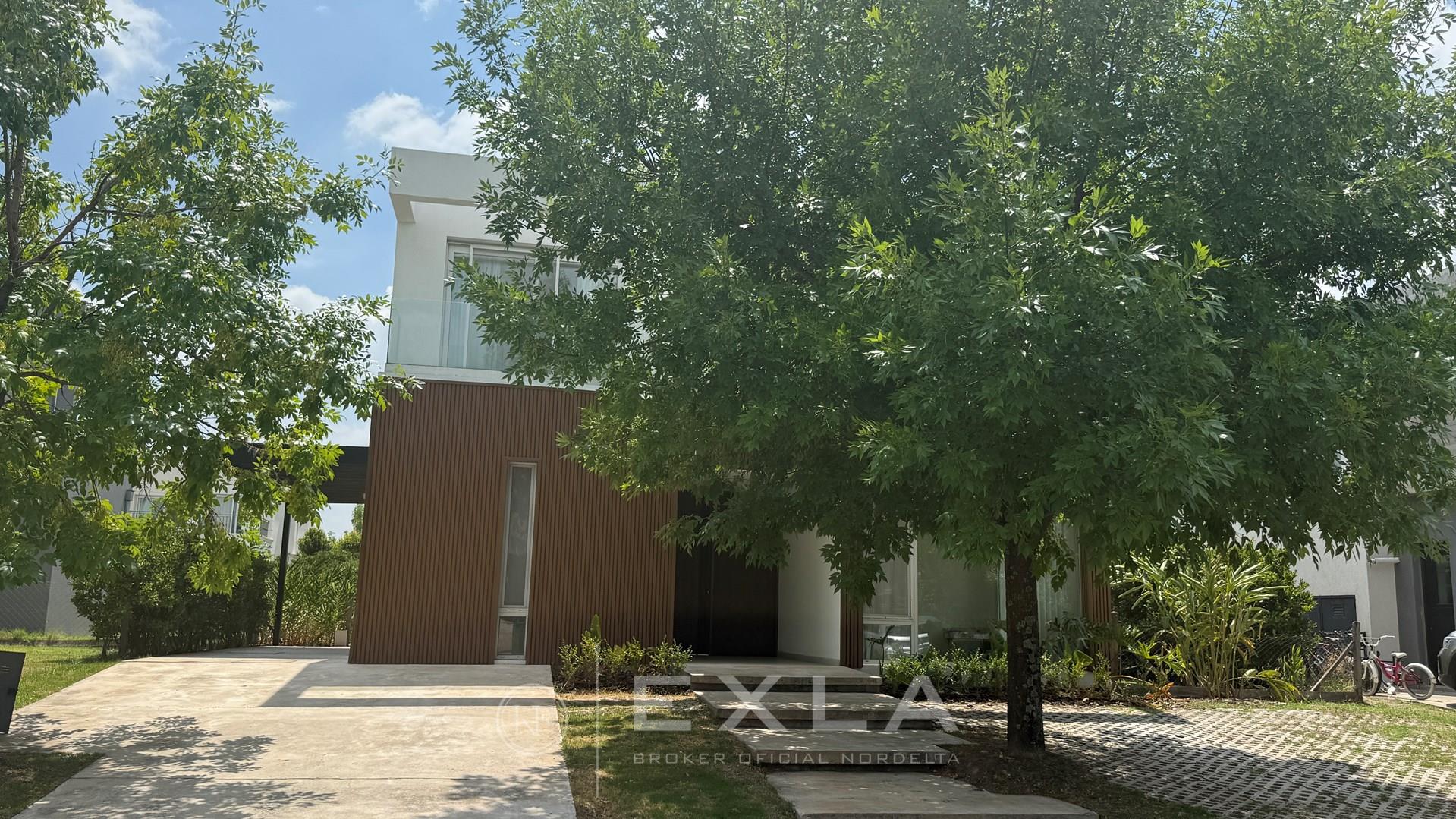 Casa en venta en Nordelta Barrio castaños. Excelente casa moderna y en impecable estado ubicada en divino lote central orientado al Nor Este. Muy moderna, luminosa y con detalles cancheros. Excelente y cómoda distribución con ambientes amplios, PB: Hermosa puerta de ingreso en madera maciza, divina recepcion apaisada con ventanales de piso a techo, cocina independiente con puerta de madera divisoria y barra desayunadora; jardín interno con plantas, dependencia de servicio con su baño, toilette con ducha y un espacio al frente que puede ser destinado a 4 dormitorio o play precioso con un gran ventanal al frente. PA: se accede a través de una escalera moderna revestida en madera con una lucarna en el techo que permite ingreso del sol y mucha luz, Suite principal con vestidor y baño con doble Bacha con acceso a una hermosa y privada terraza. Exterior: Galería con Parrilla, jardín parquizado y piscina. La casa tiene muy buenas terminaciones con sanitarios Roca y Griferías Ferrum, Aberturas de calidad, revestimientos modernos. Aires acondicionados en todos los ambientes, luces y cortinas. Castaños esta posicionado dentro de Nordelta como un barrio Joven con inmejorable acceso cercano al ingreso Bancalari, infraestructura de servicios como canchas de padel, de futbol, de tenis, club house con pileta que actualmente funciona como restaurante. La casa tiene una relación precio/calidad inmejorable. Casa ofrecida en Venta EN EXCLUSIVIDAD por KF EXLA SA Brokers Oficiales de Nordelta. COTI en trámite a cargo del propietario. Martillero Publico CMCPSI 6692