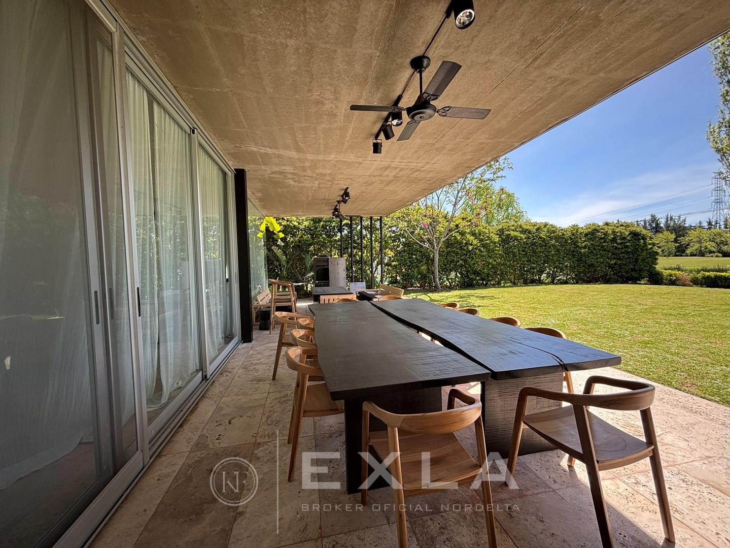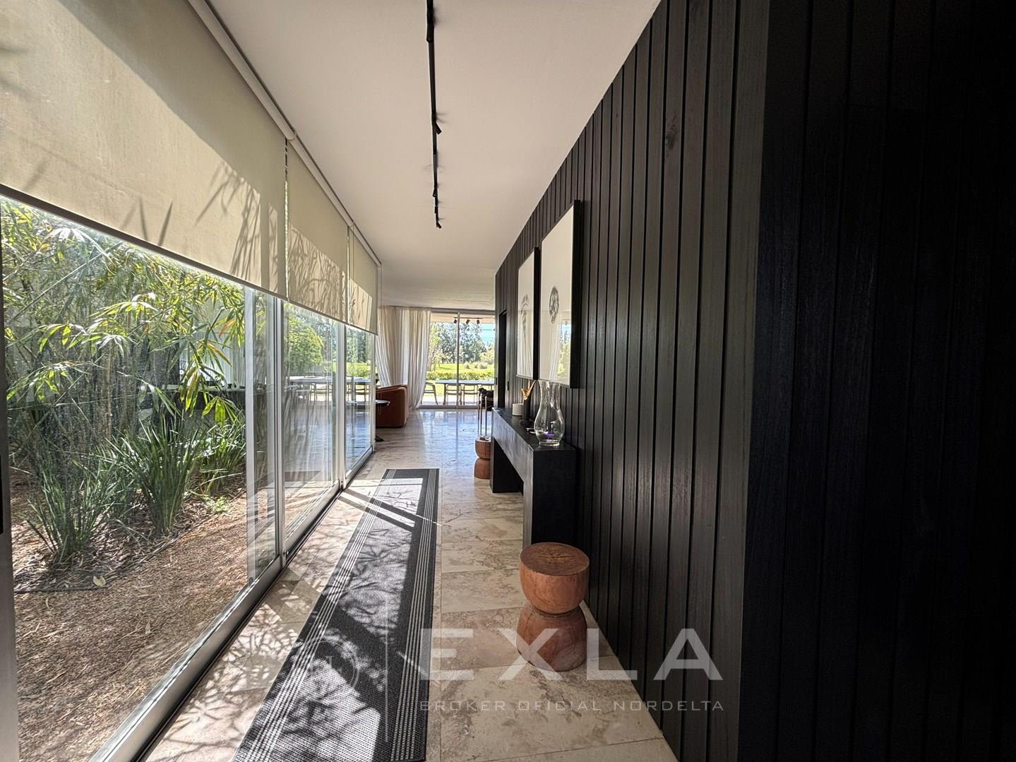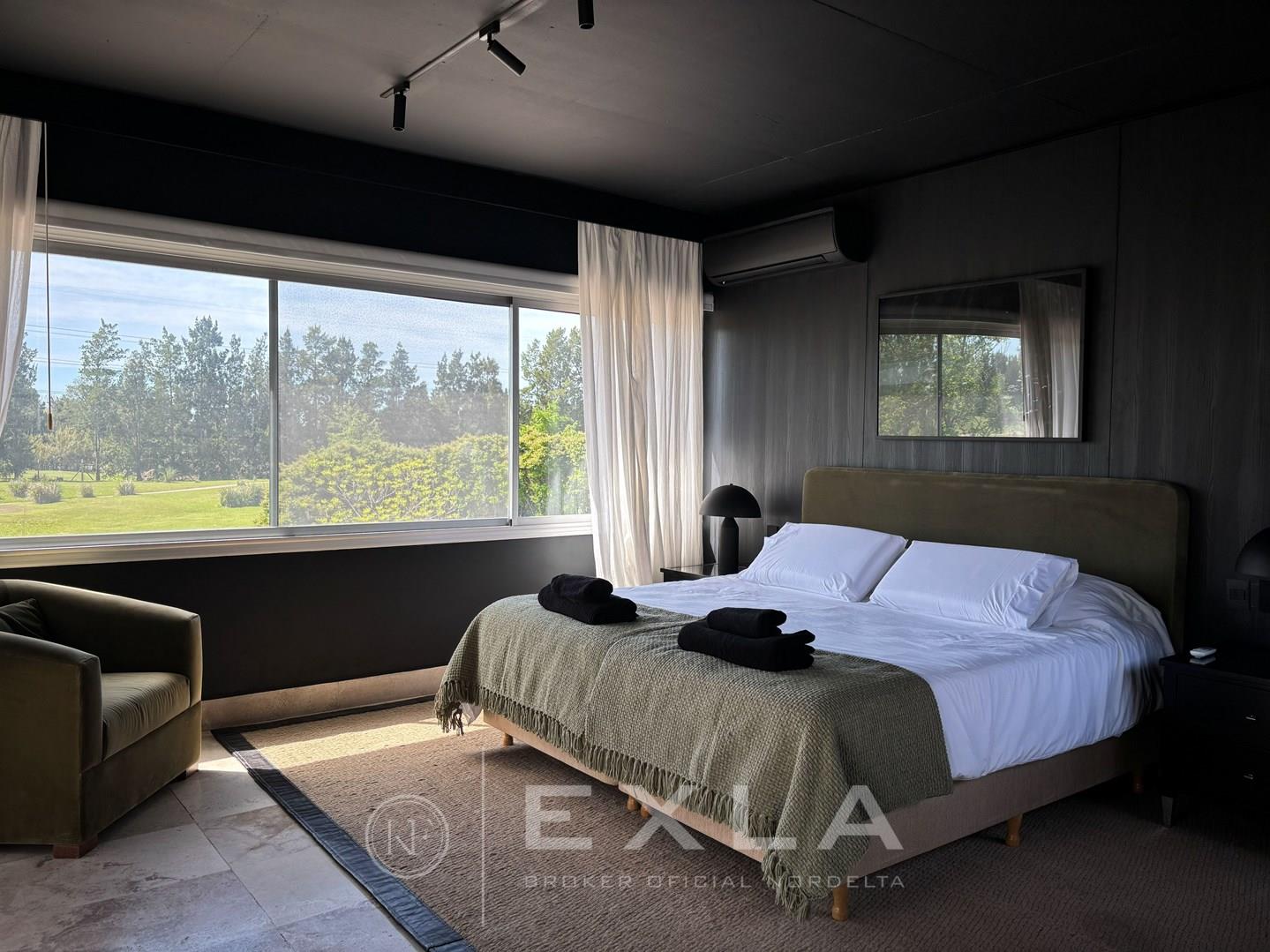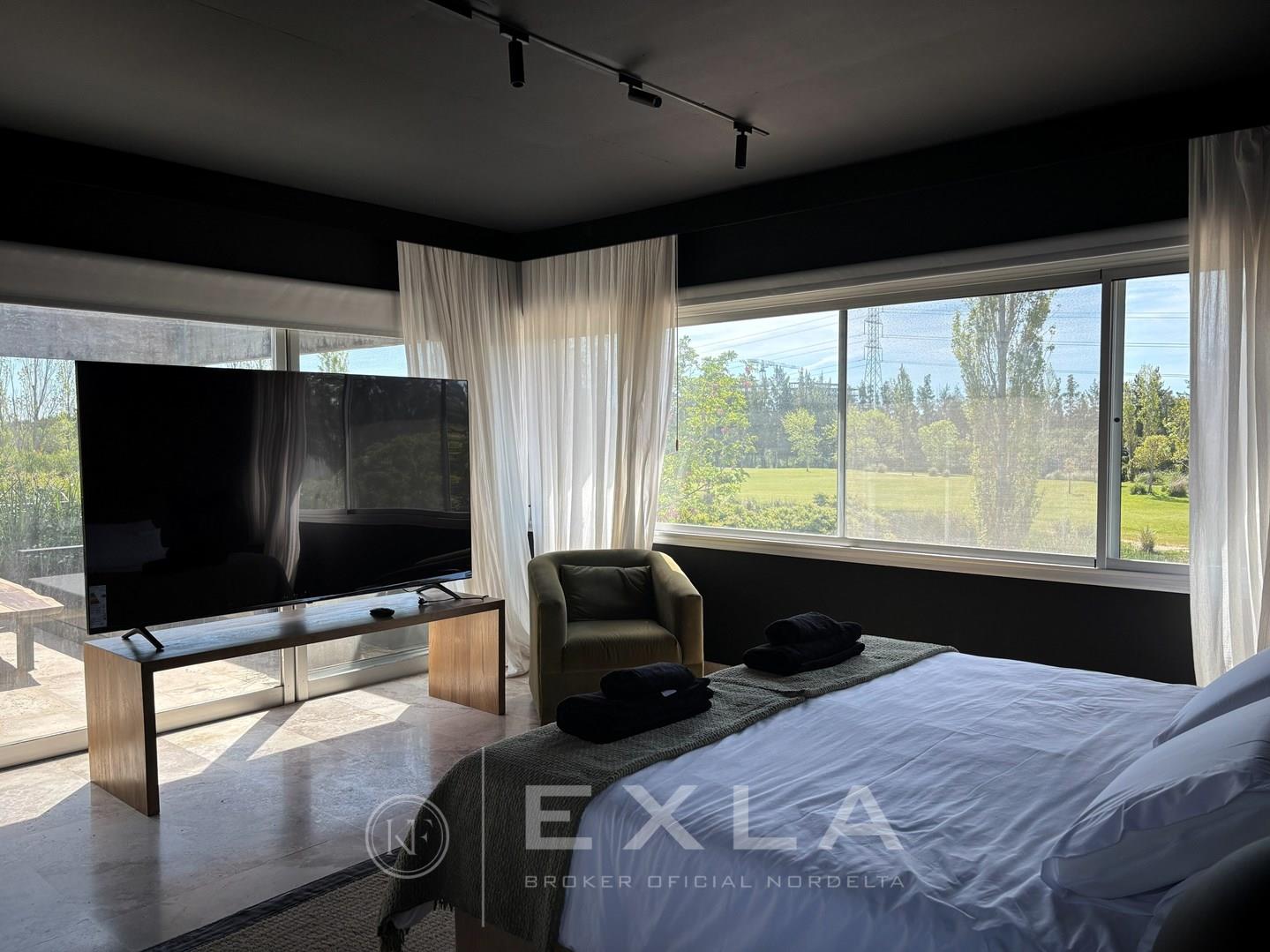 Casa en alquiler en El Golf Nordelta sobre la cancha de Golf amueblada. Orientación Norte. Espectacular casa estilo racionalista de hormigón. Planta baja: Gran puerta de ingreso con cerradura digital. Hall de entrada con un patio interno. Toilette. Living comedor con grandes ventanales con vista a la cancha de golf. Playroom con acceso a la galería. Cocina con isla y con un jardín de invierno cerrado con puertas de vidrio que amplían la cocina. Lavadero con acceso independiente. Dormitorio y baño de servicio. Planta alta: Acceso por escalera. Dormitorio en suite con vestidor y baño. Dos dormitorios que comparten un baño. Suite principal con vista a la cancha de golf. Vestidor. Baño. Terraza. Exterior: Galería con parrilla sector para mesa y living. Pileta. Jardín parquizado. Riego. Piso de mármol travertino. Calefacción por losa radiante. Alquiler anual con muebles usd 8500 sin muebles usd 8000 COTI en trámite a cargo del propietario. Martillero Publico CMCPSI 6692