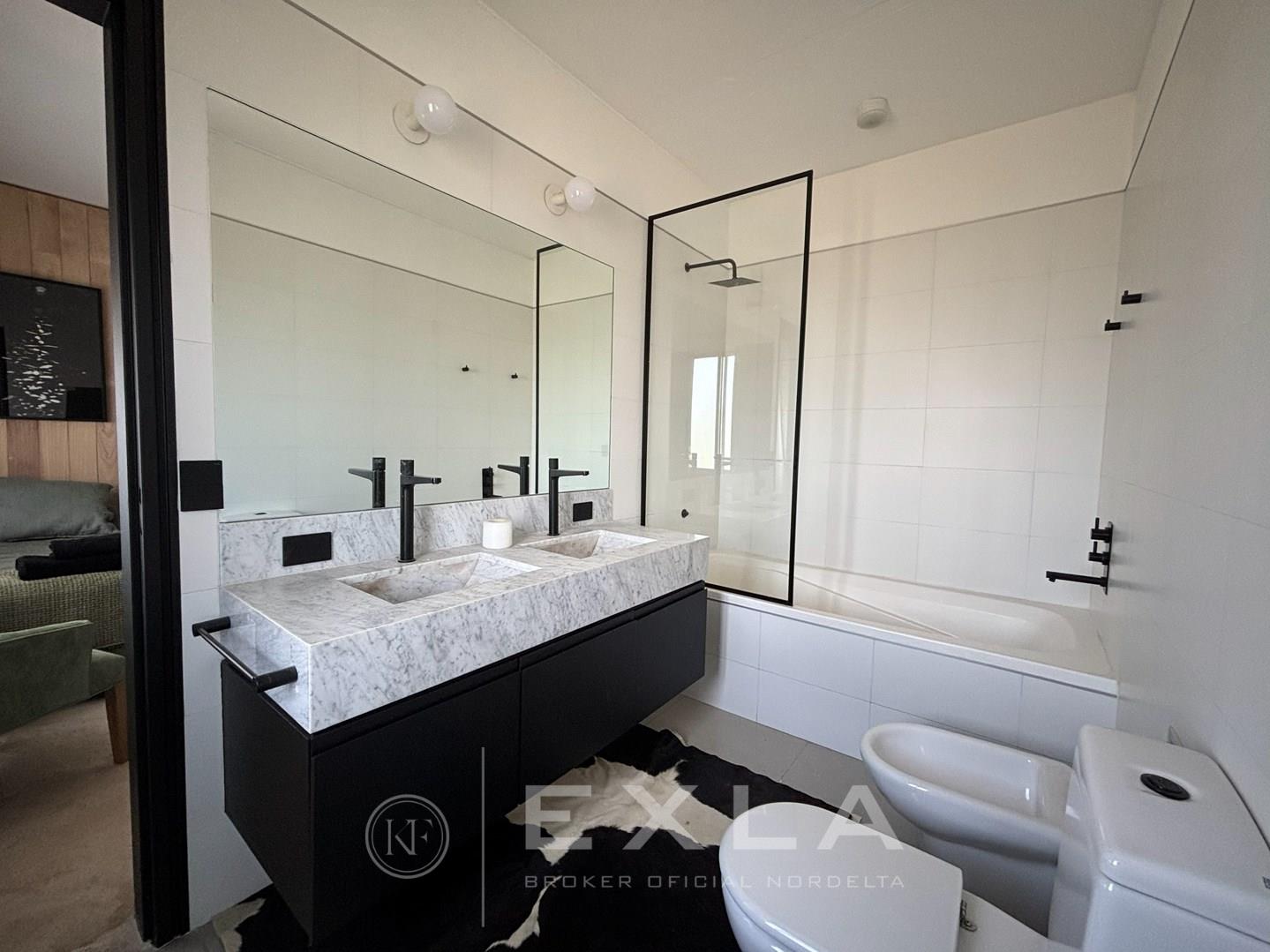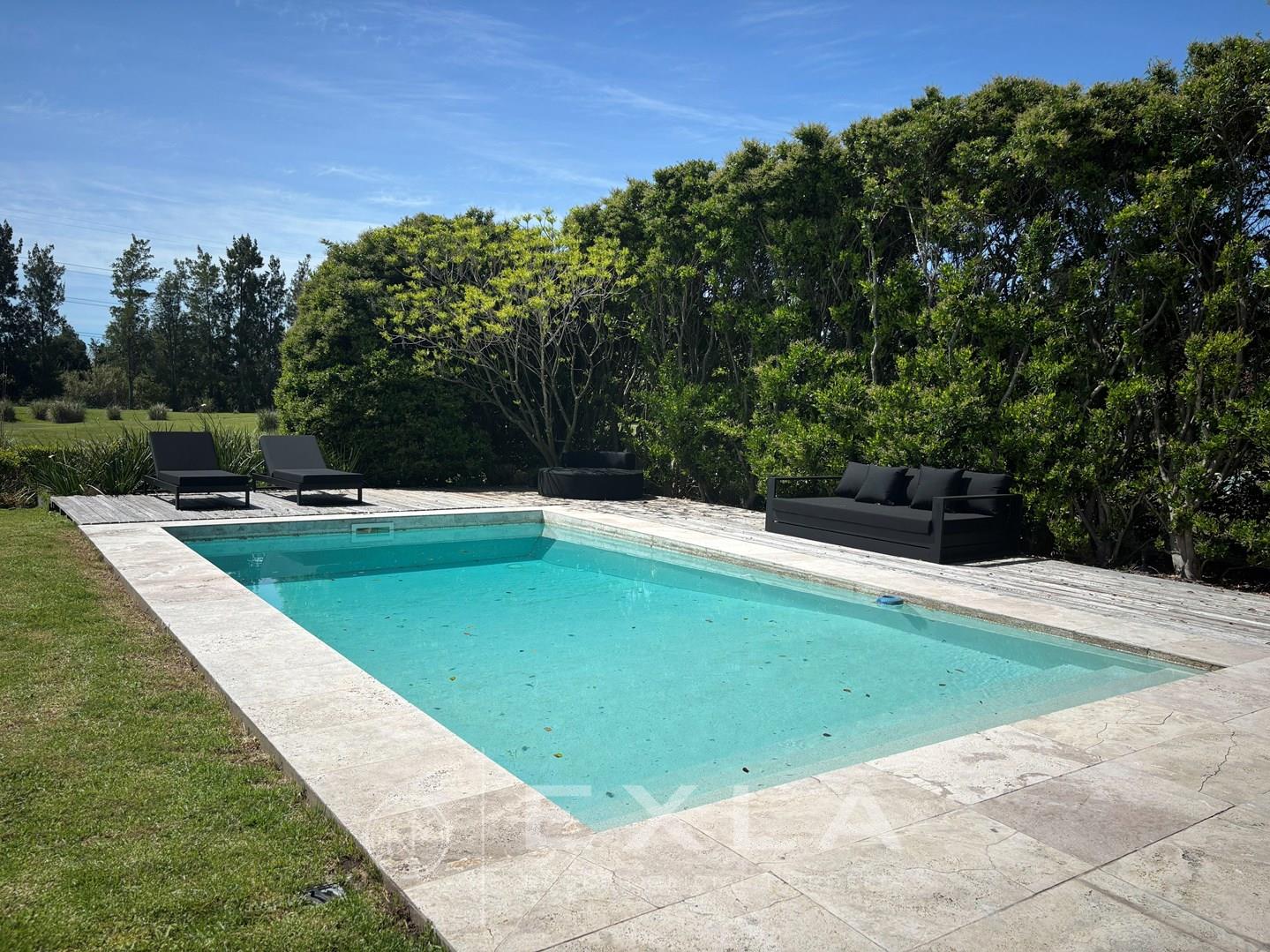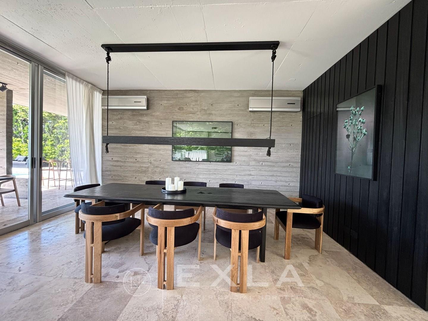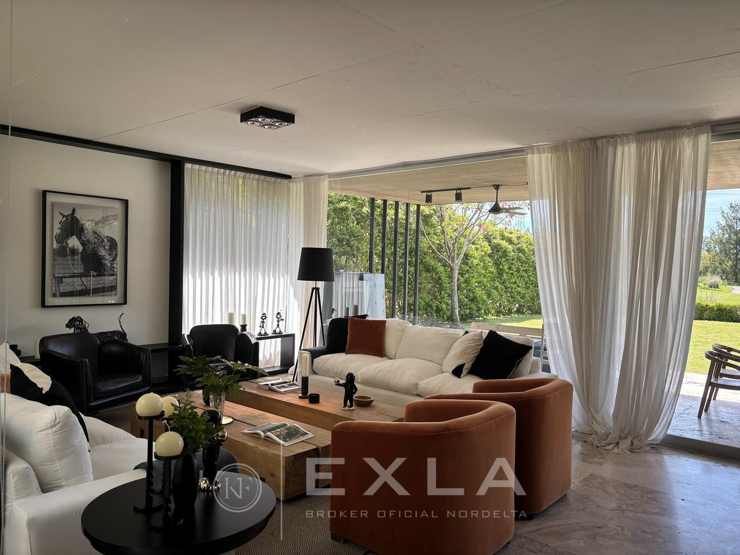 Casa en alquiler en El Golf Nordelta sobre la cancha de Golf amueblada. Orientación Norte. Espectacular casa estilo racionalista de hormigón. Planta baja: Gran puerta de ingreso con cerradura digital. Hall de entrada con un patio interno. Toilette. Living comedor con grandes ventanales con vista a la cancha de golf. Playroom con acceso a la galería. Cocina con isla y con un jardín de invierno cerrado con puertas de vidrio que amplían la cocina. Lavadero con acceso independiente. Dormitorio y baño de servicio. Planta alta: Acceso por escalera. Dormitorio en suite con vestidor y baño. Dos dormitorios que comparten un baño. Suite principal con vista a la cancha de golf. Vestidor. Baño. Terraza. Exterior: Galería con parrilla sector para mesa y living. Pileta. Jardín parquizado. Riego. Piso de mármol travertino. Calefacción por losa radiante. Alquiler anual con muebles usd 8500 sin muebles usd 8000 COTI en trámite a cargo del propietario. Martillero Publico CMCPSI 6692