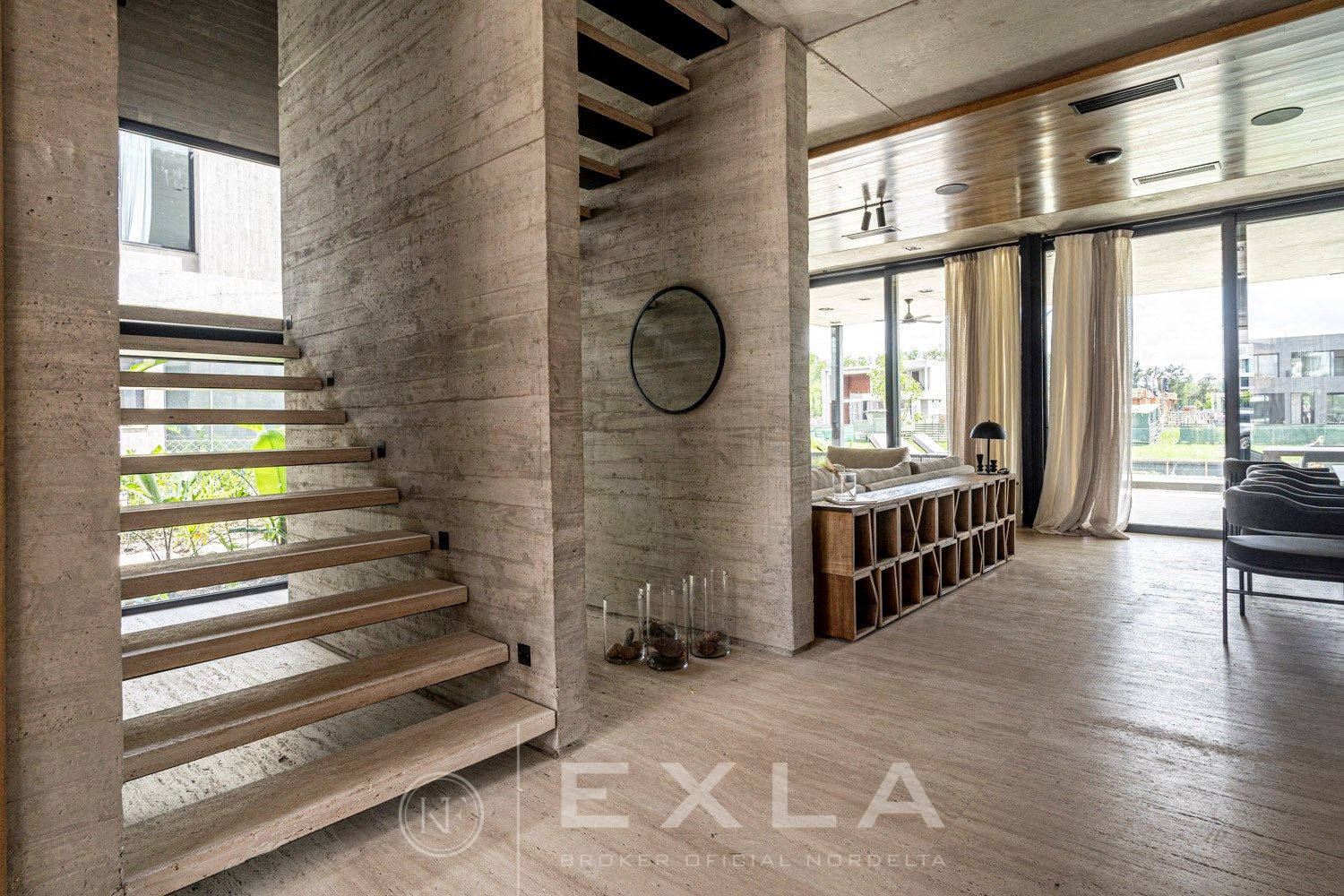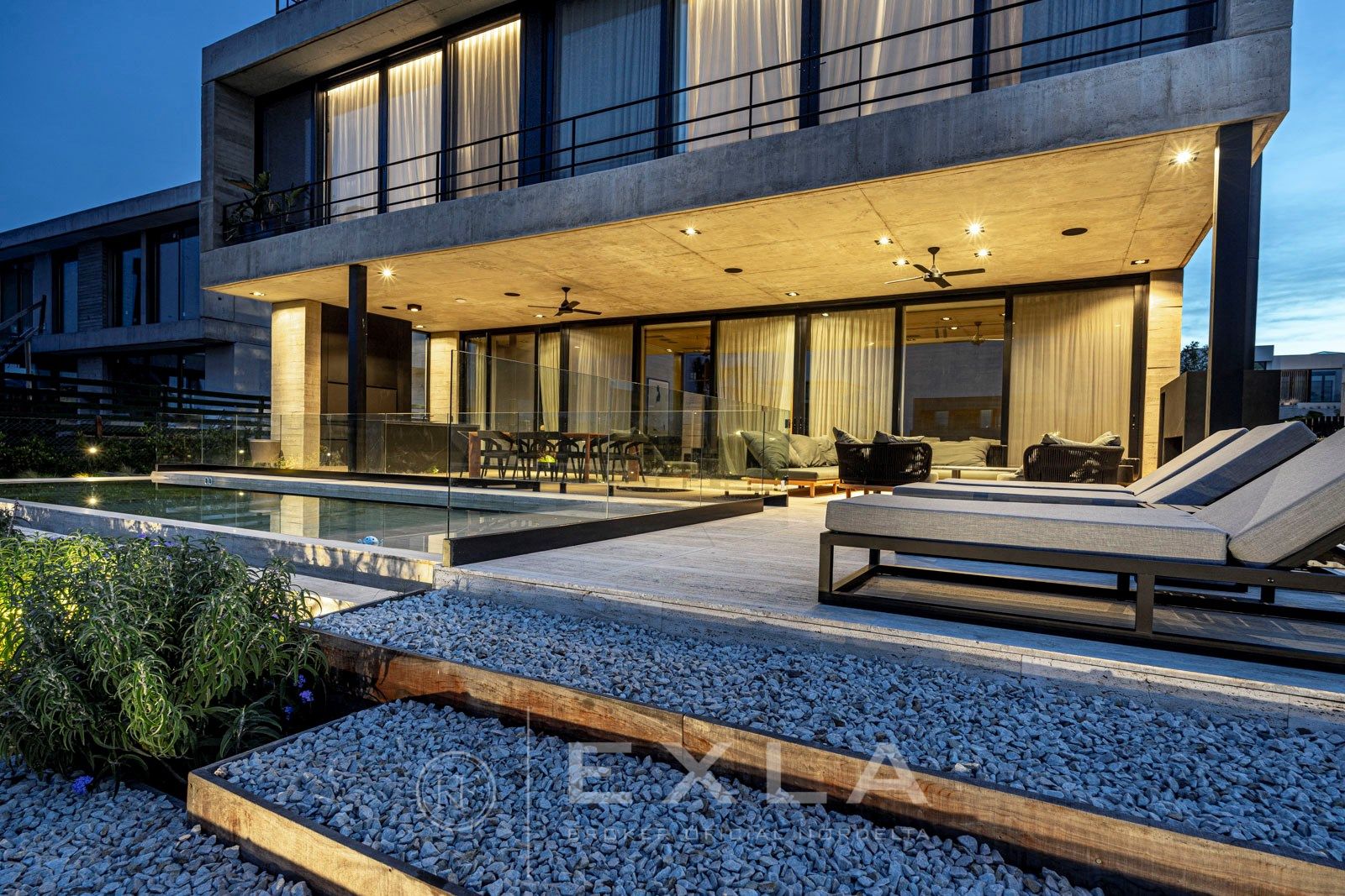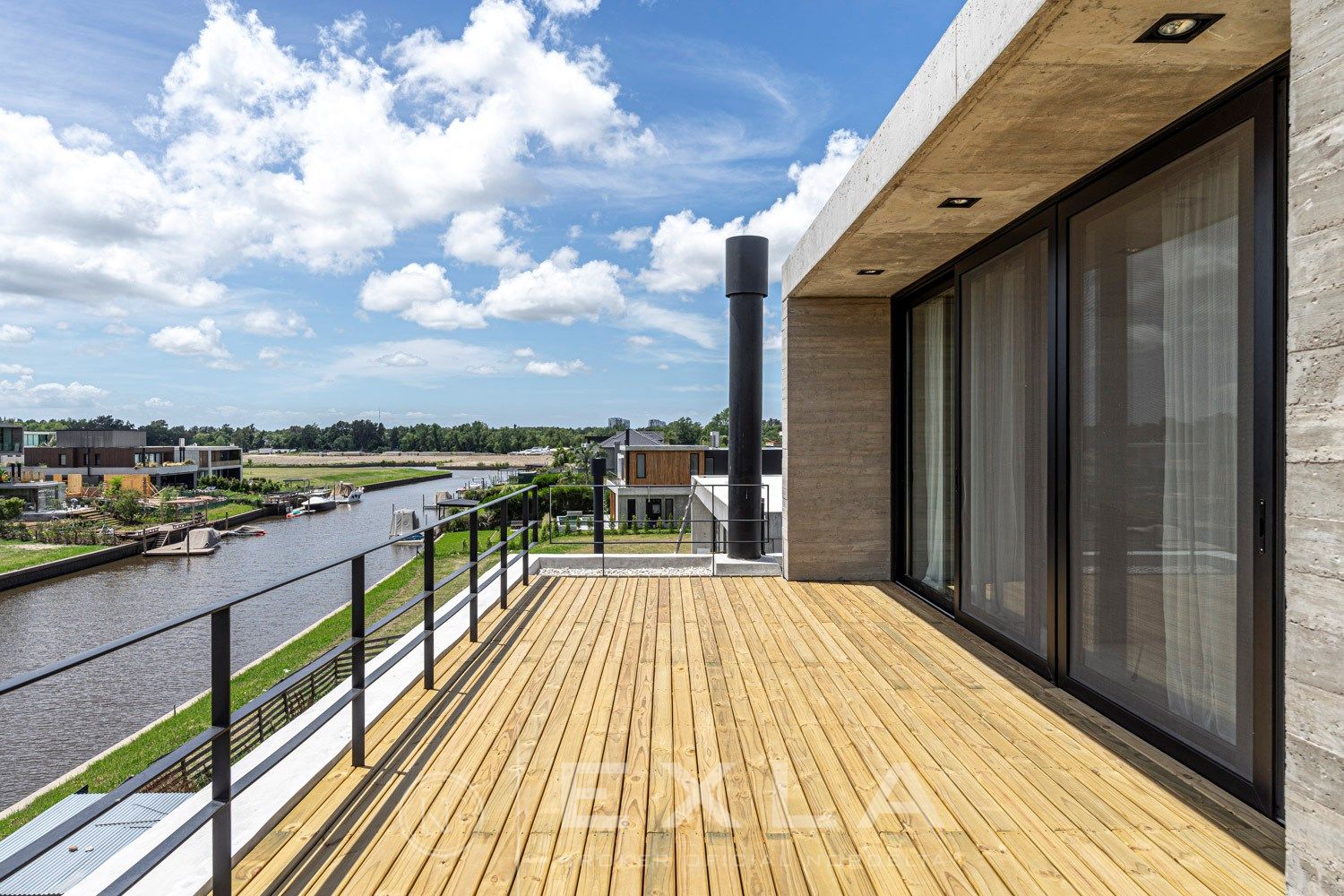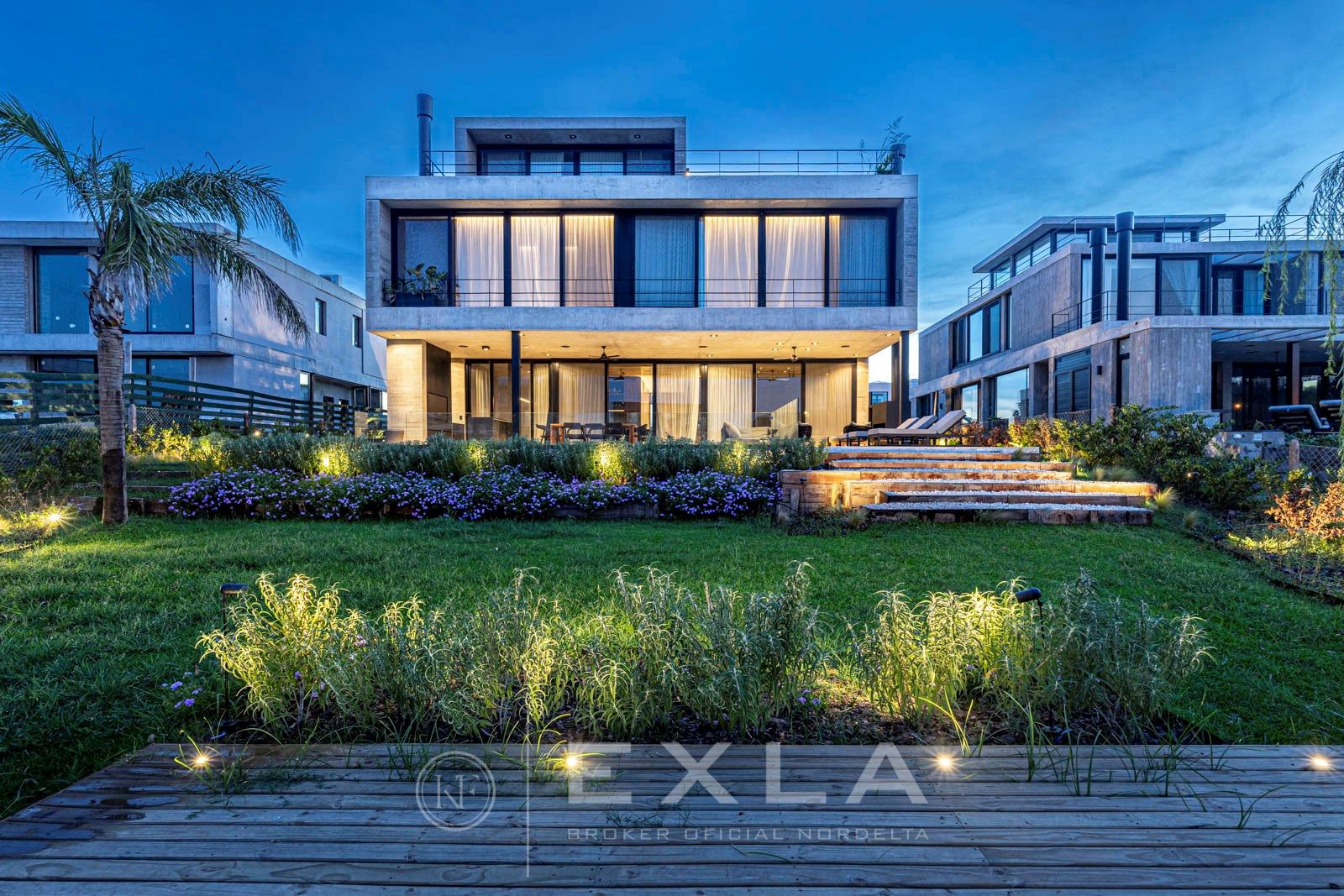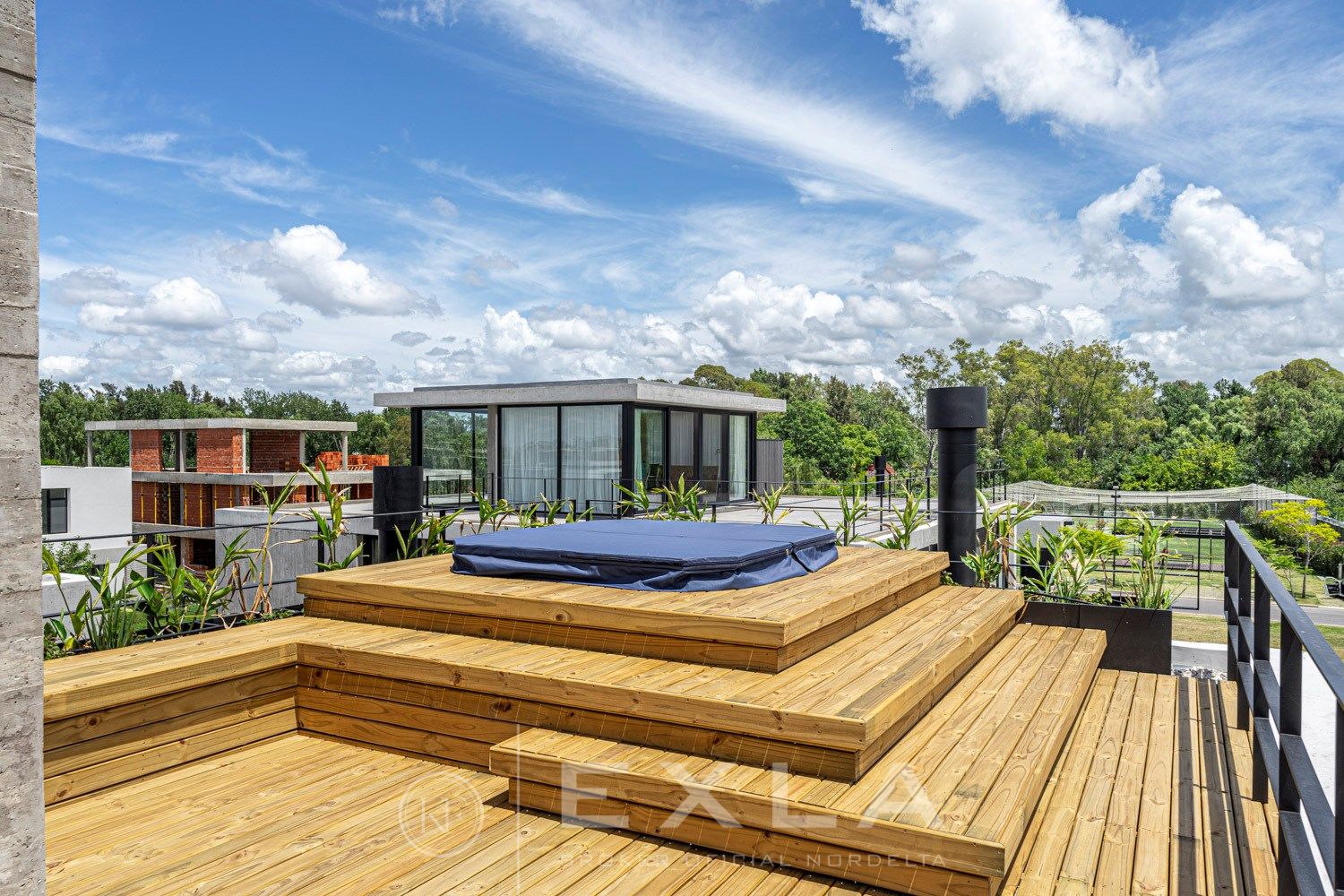 IMPONENTE CASA EN VENTA EN EL YACHT CON DISEÑO DE HERNAN DE LOS HEROS. A ESTRENAR. Sobre lote de 983 metros con Orientacion Noreste. Planta Baja: Hall de entrada. Toilette. Playroom. Living Comedor. Cocina. Lavadero. Dependencias. garage para 2 autos. Galeria con parrilla y chimenea. Pileta revestida en travertino. Jardin totalmente parquizado. Muelle. Planta Alta: Suite Principal con espectacular bano y 2 vestidores. Suite junior. Dos dormitorios que comparten un bano. Tercer Piso: Gran lugar para multiples usos, puede ser playroom, gimnasio, escritorio, etc. con bano completo y jacuzzi. Gran terraza con hidromasaje con increibles vistas. Terminaciones de alta calidad y tecnologia. Metros cubiertos 540 Metros totales 660 COTI en trámite a cargo del propietario. Martillero Publico CMCPSI 6692