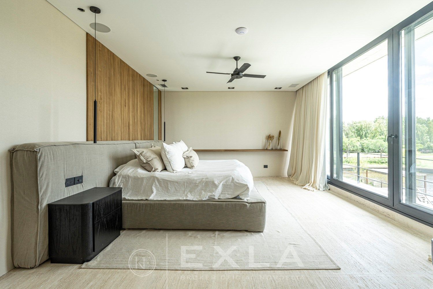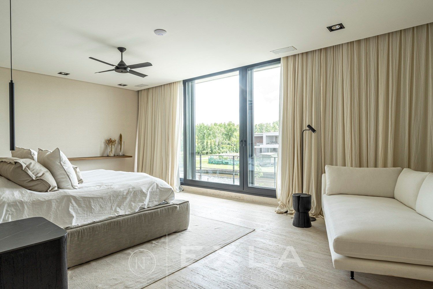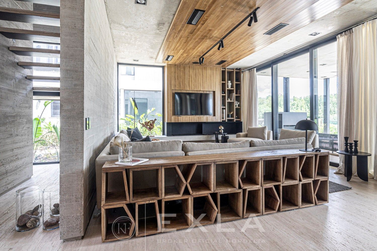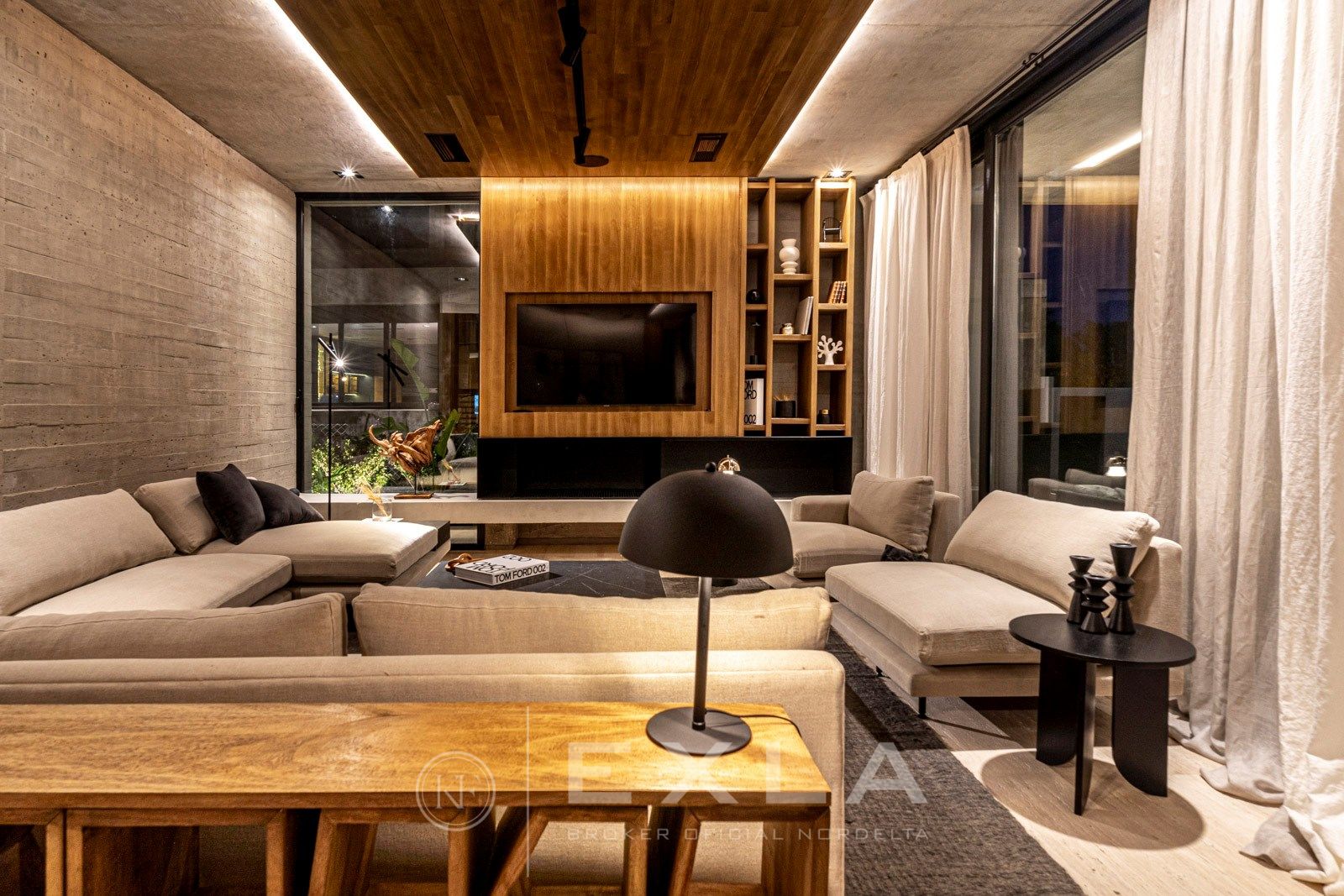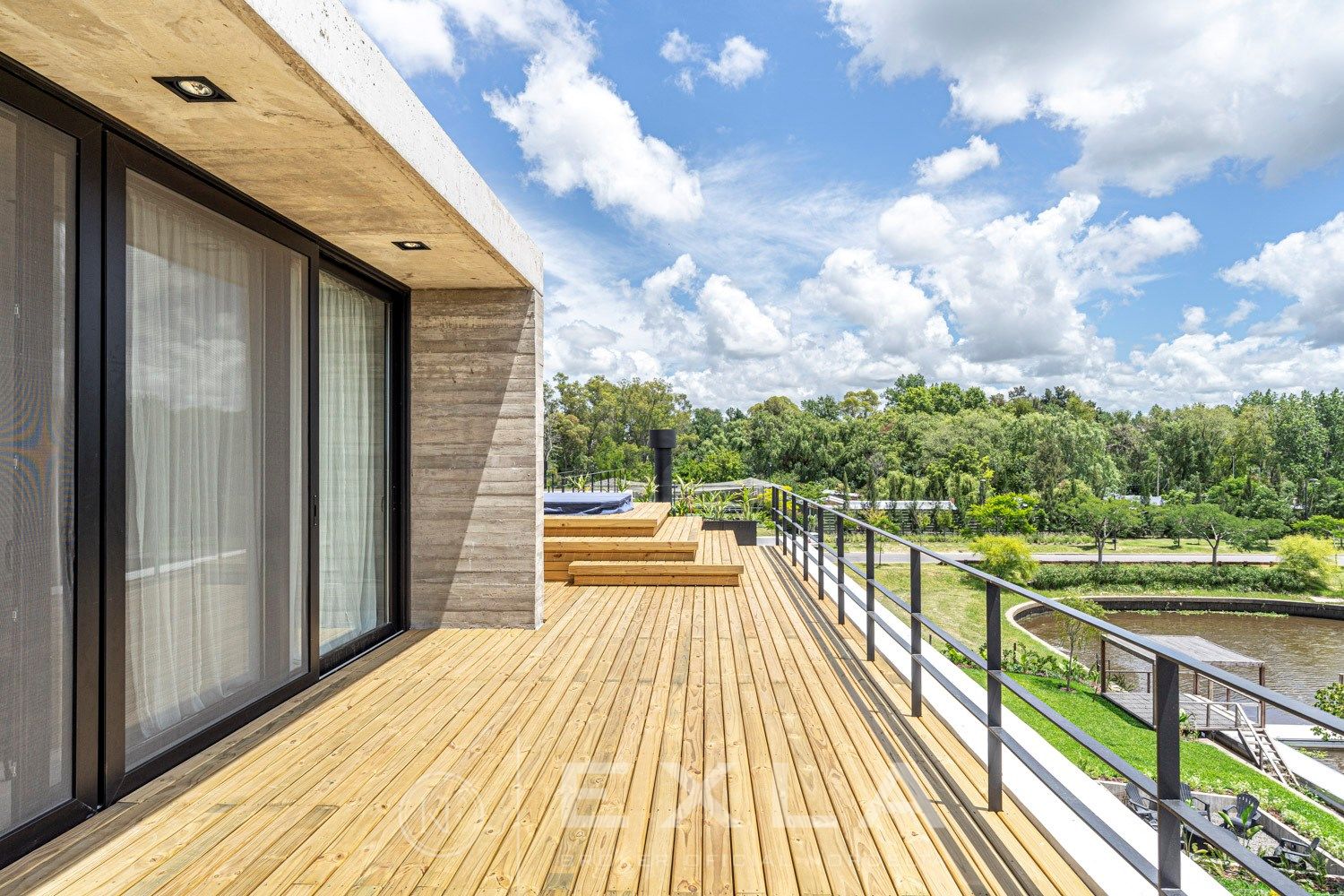 IMPONENTE CASA EN VENTA EN EL YACHT CON DISEÑO DE HERNAN DE LOS HEROS. A ESTRENAR. Sobre lote de 983 metros con Orientacion Noreste. Planta Baja: Hall de entrada. Toilette. Playroom. Living Comedor. Cocina. Lavadero. Dependencias. garage para 2 autos. Galeria con parrilla y chimenea. Pileta revestida en travertino. Jardin totalmente parquizado. Muelle. Planta Alta: Suite Principal con espectacular bano y 2 vestidores. Suite junior. Dos dormitorios que comparten un bano. Tercer Piso: Gran lugar para multiples usos, puede ser playroom, gimnasio, escritorio, etc. con bano completo y jacuzzi. Gran terraza con hidromasaje con increibles vistas. Terminaciones de alta calidad y tecnologia. Metros cubiertos 540 Metros totales 660 COTI en trámite a cargo del propietario. Martillero Publico CMCPSI 6692