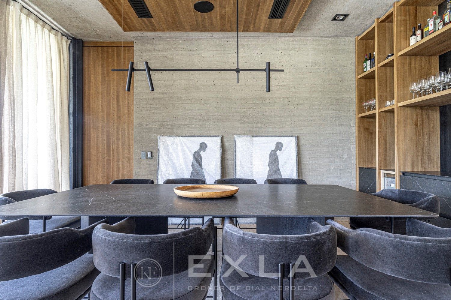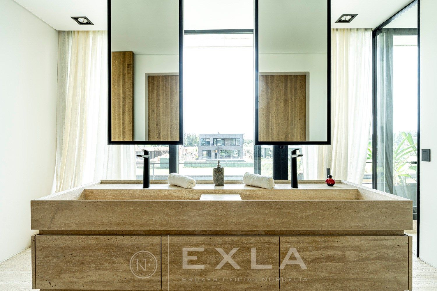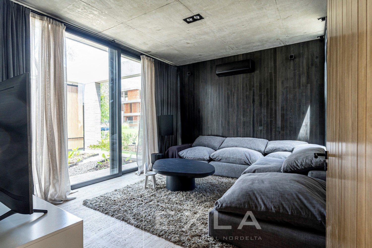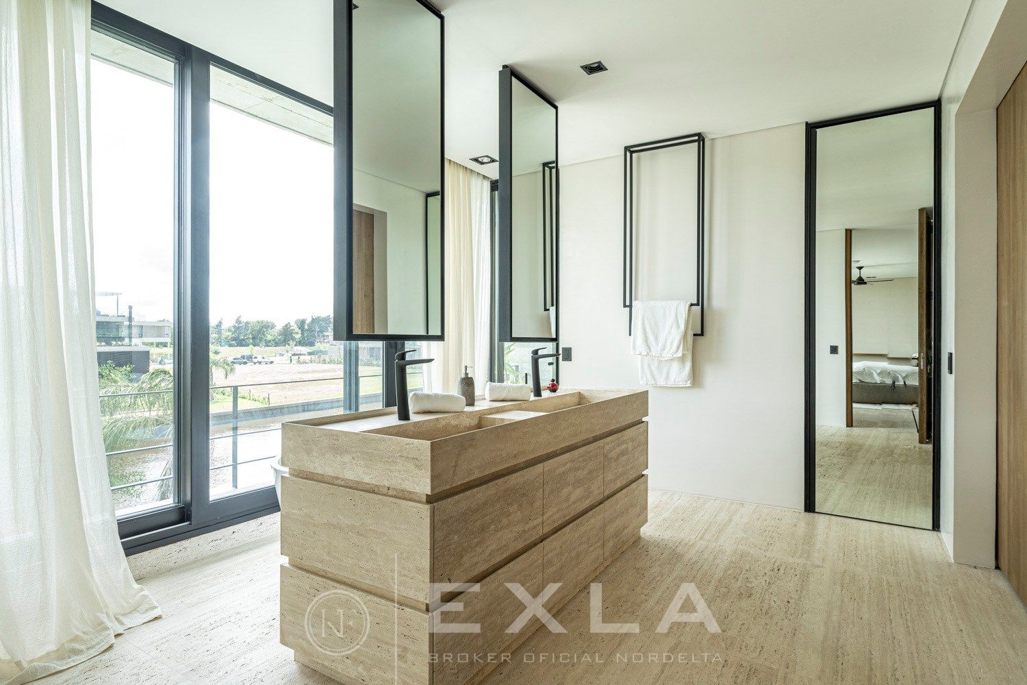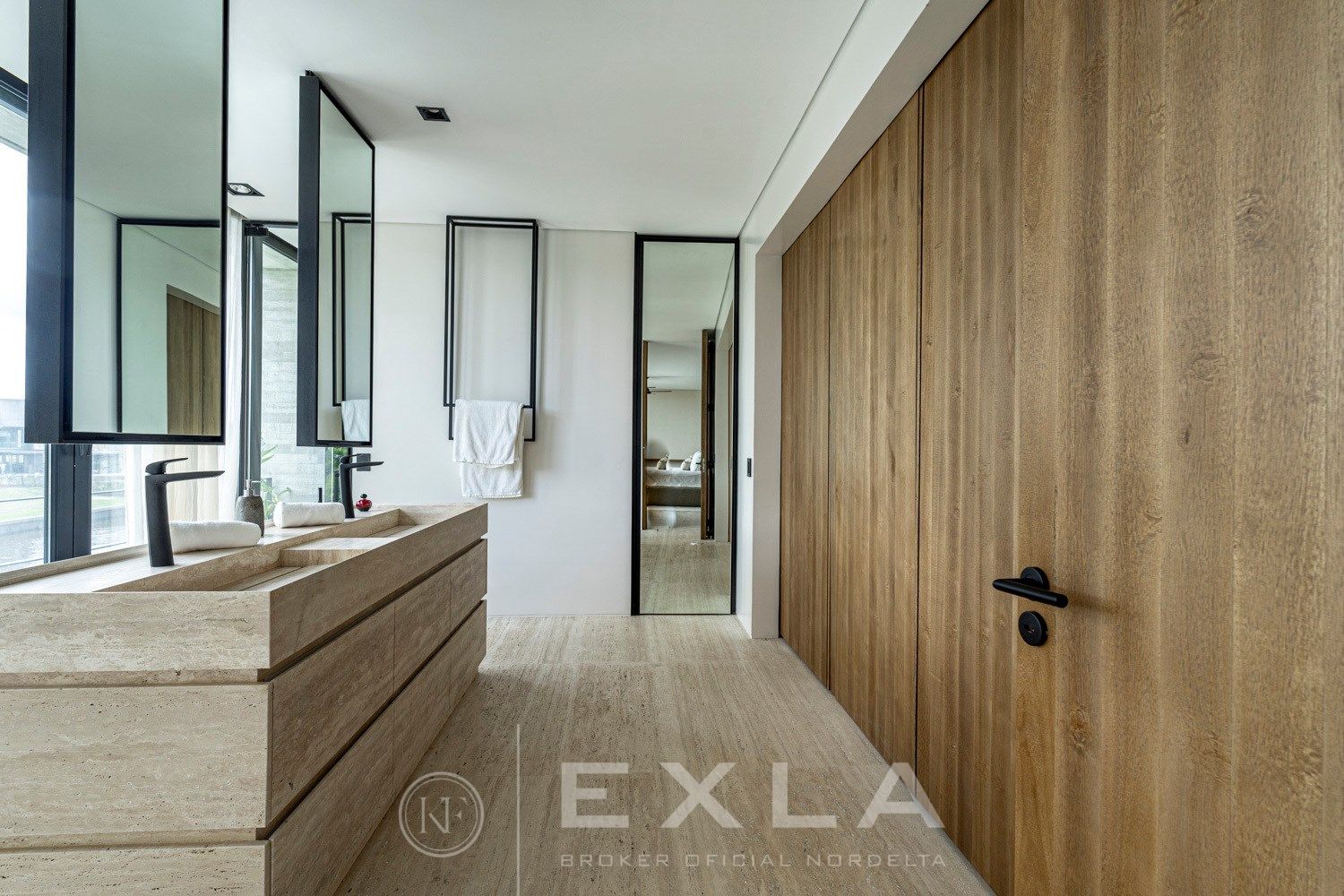 IMPONENTE CASA EN VENTA EN EL YACHT CON DISEÑO DE HERNAN DE LOS HEROS. A ESTRENAR. Sobre lote de 983 metros con Orientacion Noreste. Planta Baja: Hall de entrada. Toilette. Playroom. Living Comedor. Cocina. Lavadero. Dependencias. garage para 2 autos. Galeria con parrilla y chimenea. Pileta revestida en travertino. Jardin totalmente parquizado. Muelle. Planta Alta: Suite Principal con espectacular bano y 2 vestidores. Suite junior. Dos dormitorios que comparten un bano. Tercer Piso: Gran lugar para multiples usos, puede ser playroom, gimnasio, escritorio, etc. con bano completo y jacuzzi. Gran terraza con hidromasaje con increibles vistas. Terminaciones de alta calidad y tecnologia. Metros cubiertos 540 Metros totales 660 COTI en trámite a cargo del propietario. Martillero Publico CMCPSI 6692
