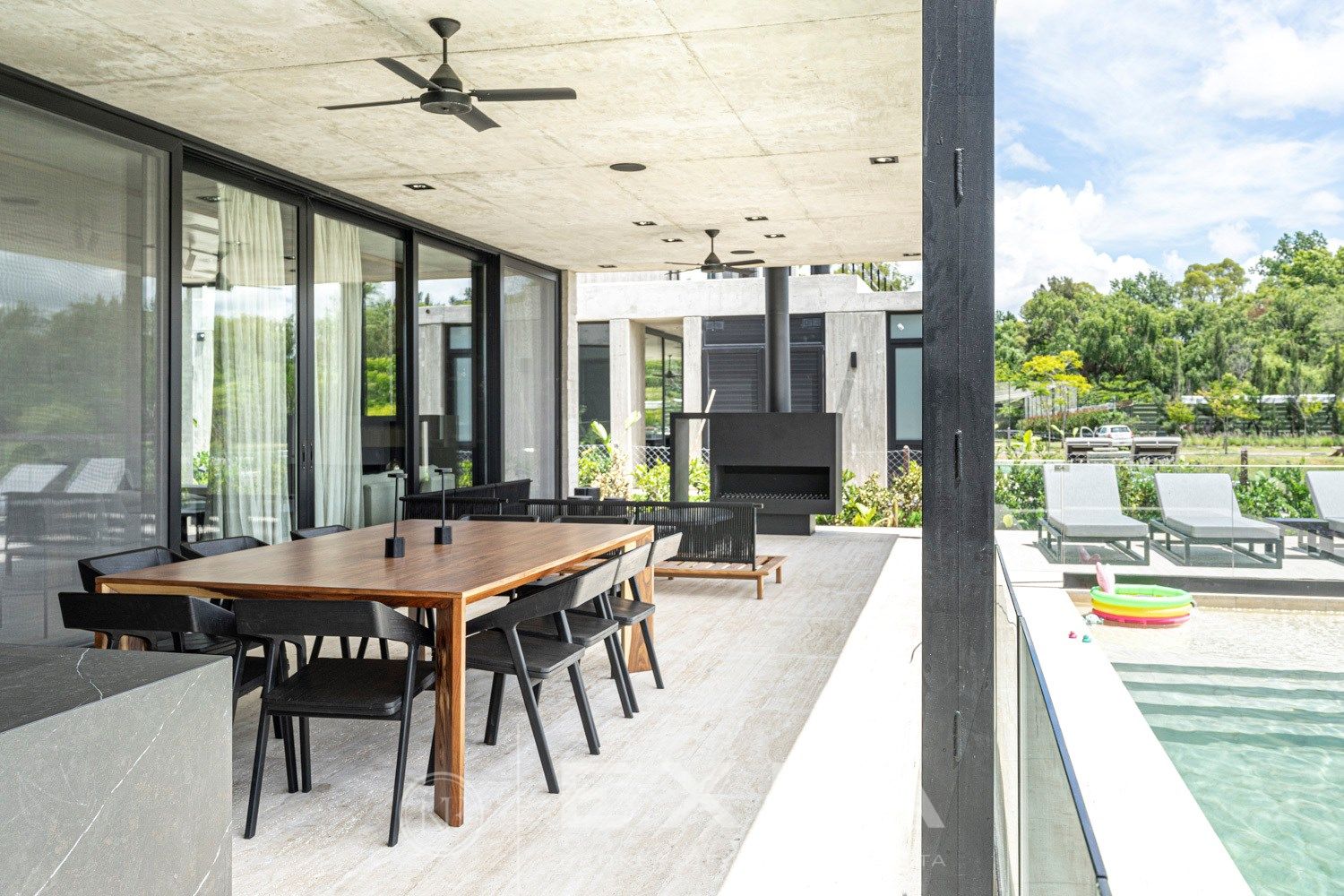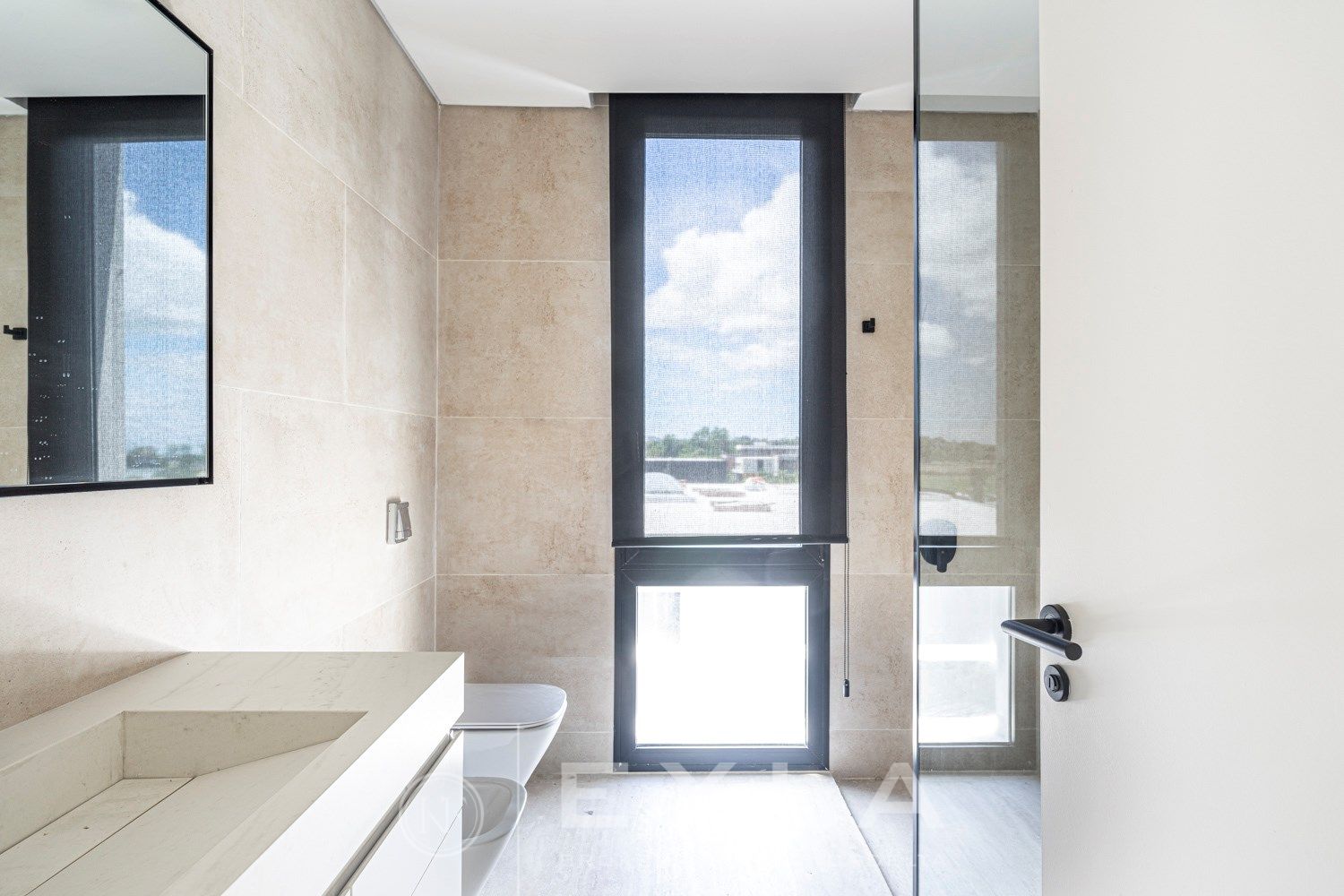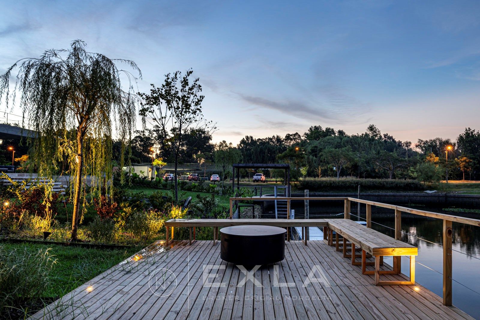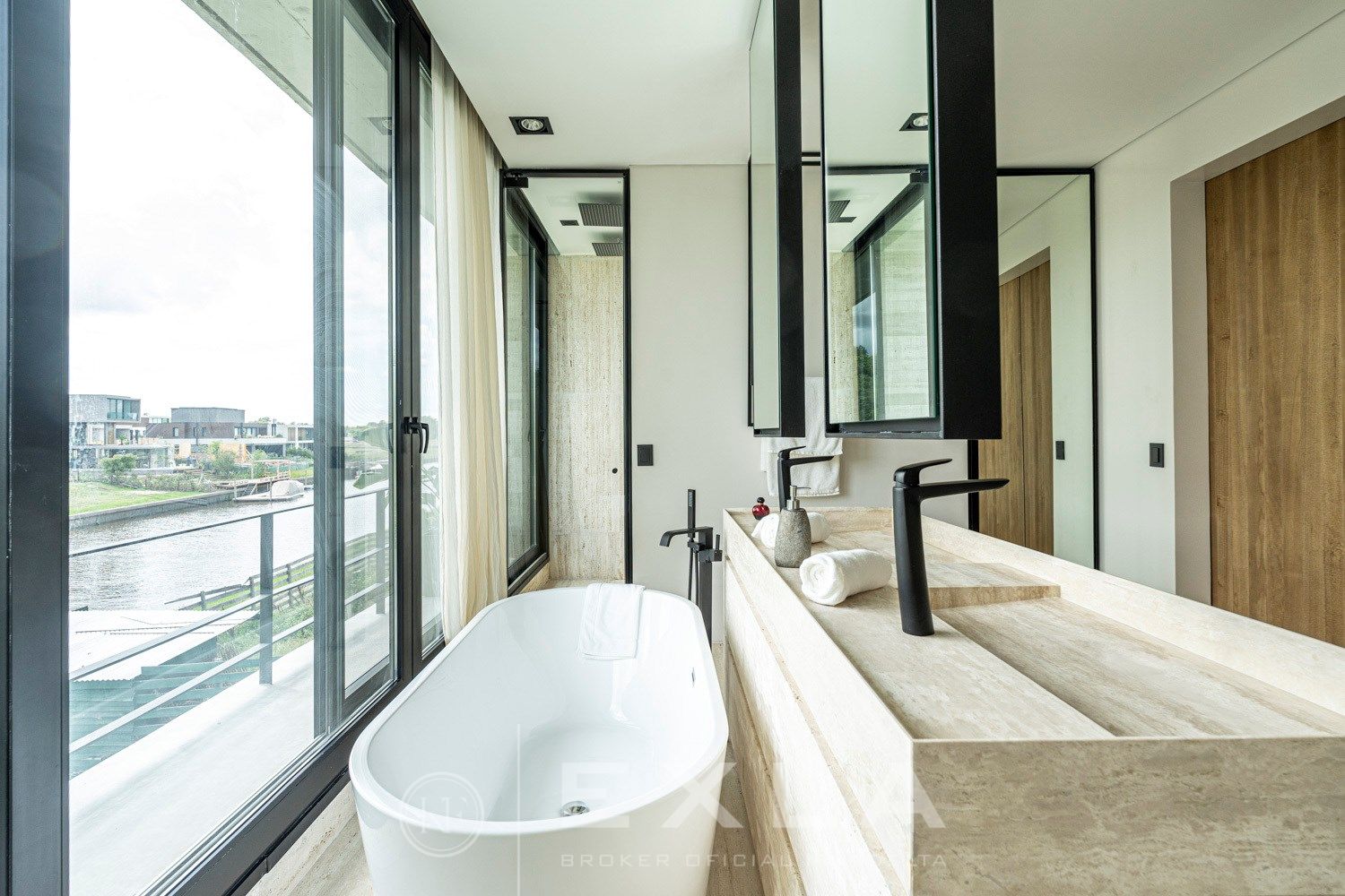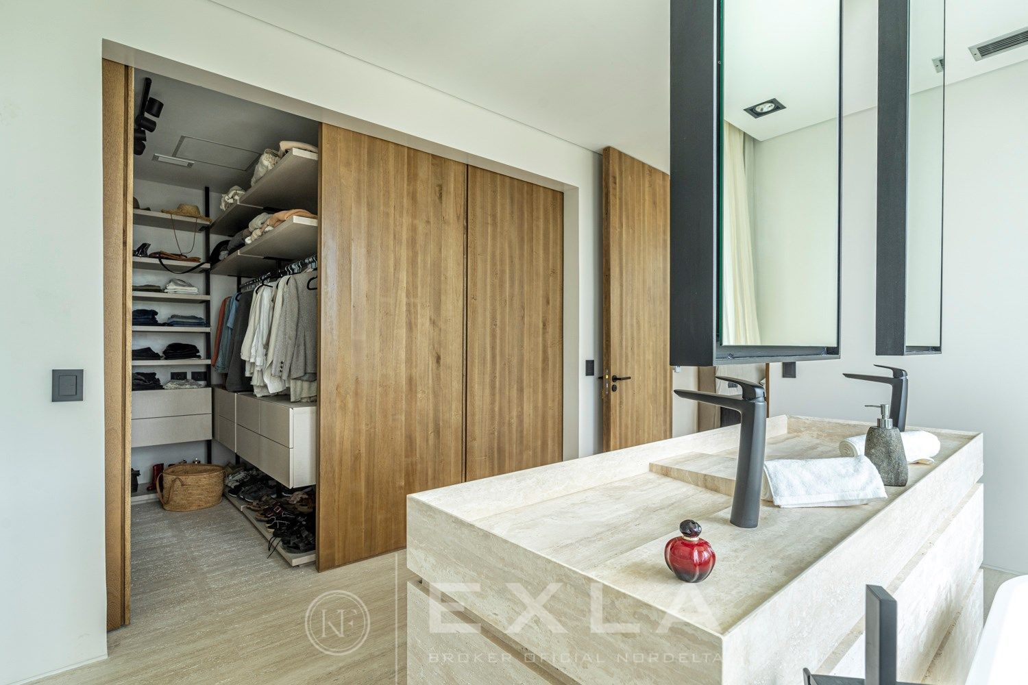 IMPONENTE CASA EN VENTA EN EL YACHT CON DISEÑO DE HERNAN DE LOS HEROS. A ESTRENAR. Sobre lote de 983 metros con Orientacion Noreste. Planta Baja: Hall de entrada. Toilette. Playroom. Living Comedor. Cocina. Lavadero. Dependencias. garage para 2 autos. Galeria con parrilla y chimenea. Pileta revestida en travertino. Jardin totalmente parquizado. Muelle. Planta Alta: Suite Principal con espectacular bano y 2 vestidores. Suite junior. Dos dormitorios que comparten un bano. Tercer Piso: Gran lugar para multiples usos, puede ser playroom, gimnasio, escritorio, etc. con bano completo y jacuzzi. Gran terraza con hidromasaje con increibles vistas. Terminaciones de alta calidad y tecnologia. Metros cubiertos 540 Metros totales 660 COTI en trámite a cargo del propietario. Martillero Publico CMCPSI 6692