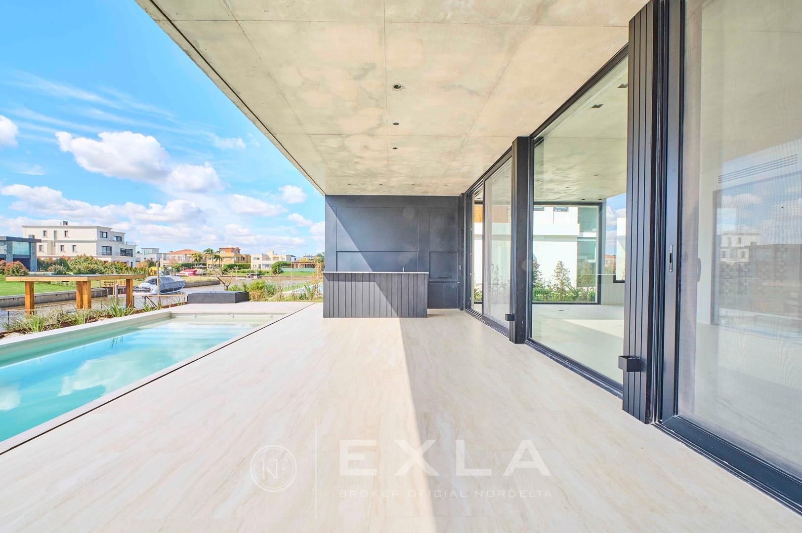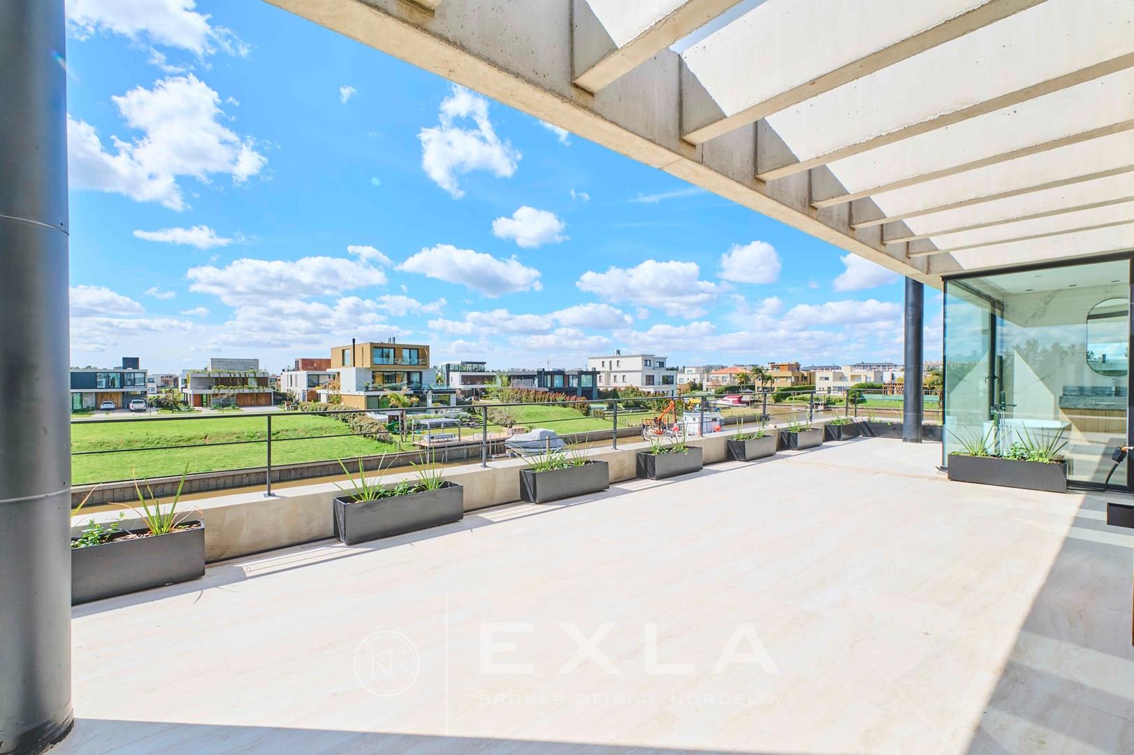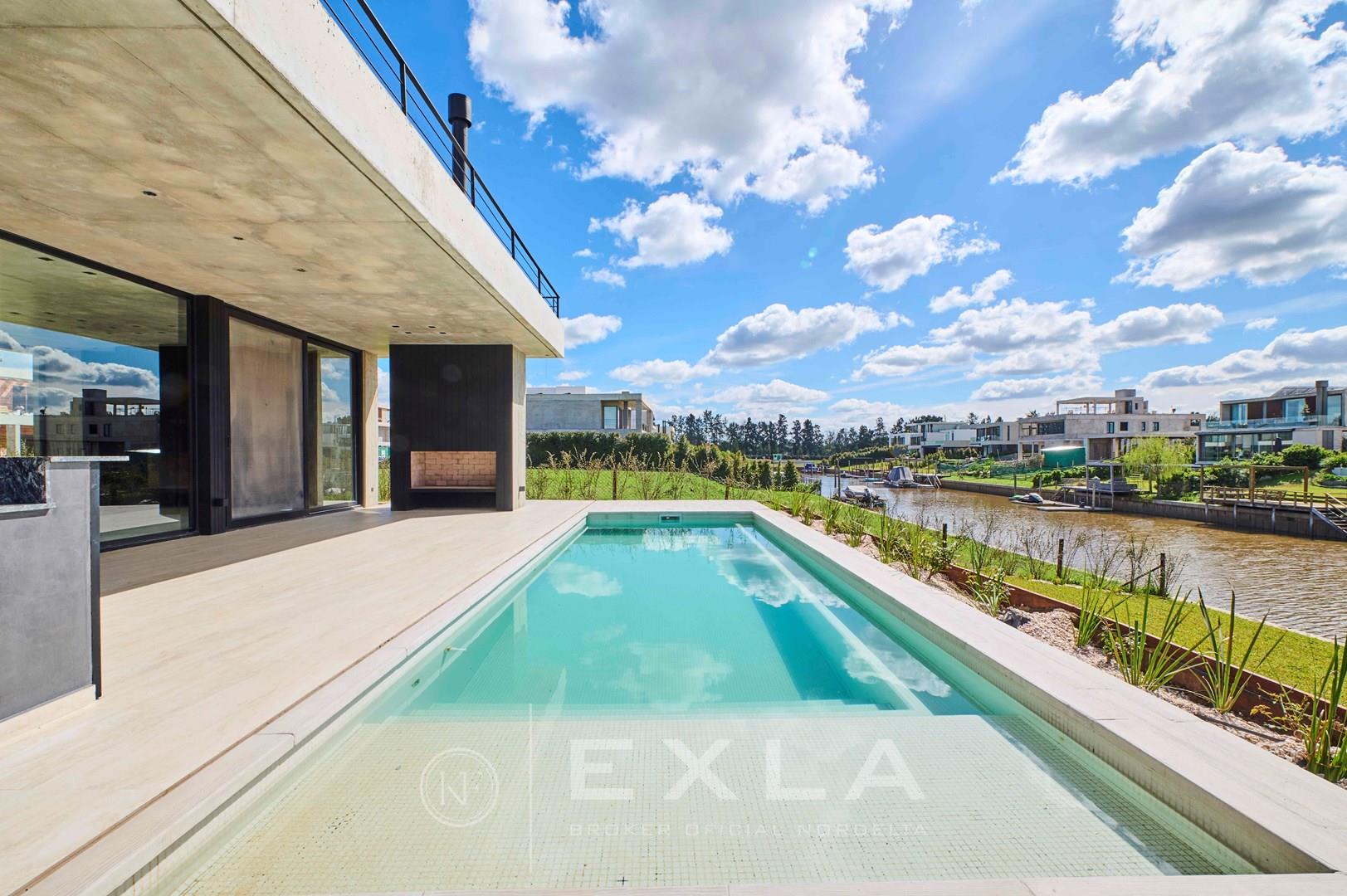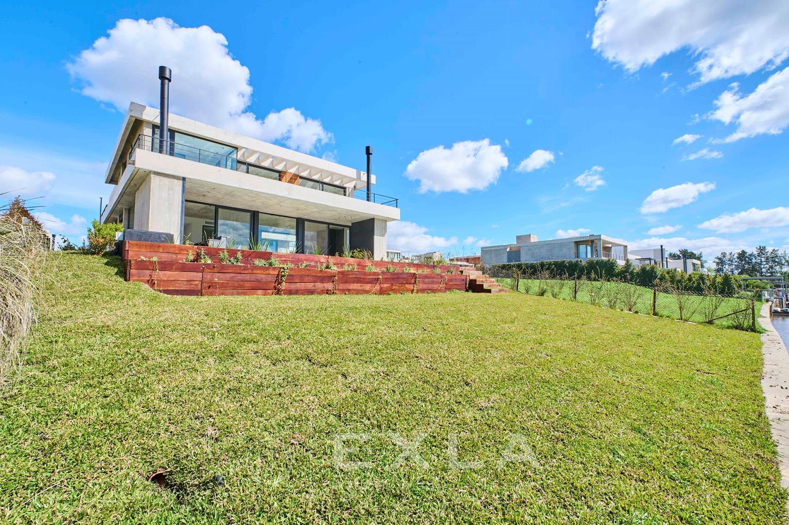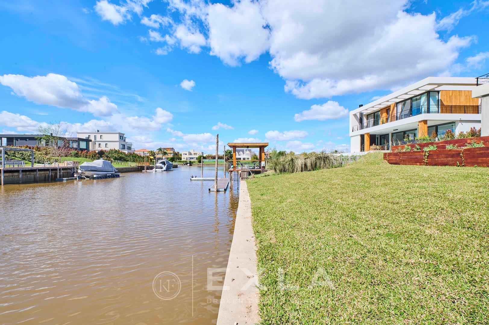 Espectacular casa de hormigon a estrenar en el Yacht sobre lote al rio con Orientacion Este. Planta Baja: Hall de entrada. Toilette de recepcion. Cocina con isla y family. Living con chimenea y comedor. Lavadero y dependencias de servicio. Galeria con parrilla y chimenea. Garage para dos autos cubiertos. Pileta de 3 x 9 revestida. Planta Alta: Master suite con dos vestidores. Escritorio o Family. 3 dormitorios en suite. Pisos de travertino. Aberturas de piso a techo. Calefaccion por losa radiante. Metros cubiertos 407,03 Metros totales 620,00 COTI en trámite a cargo del propietario. Martillero Publico CMCPSI 6692
