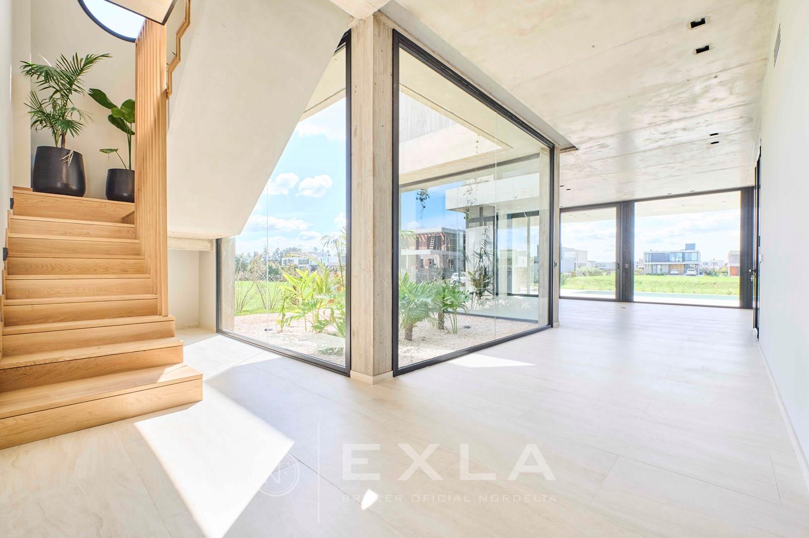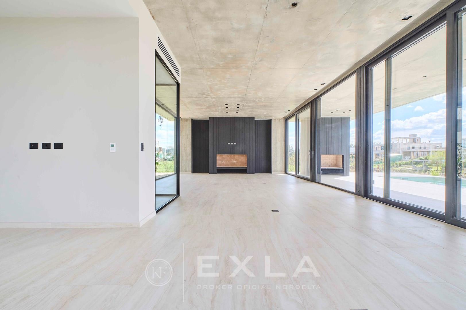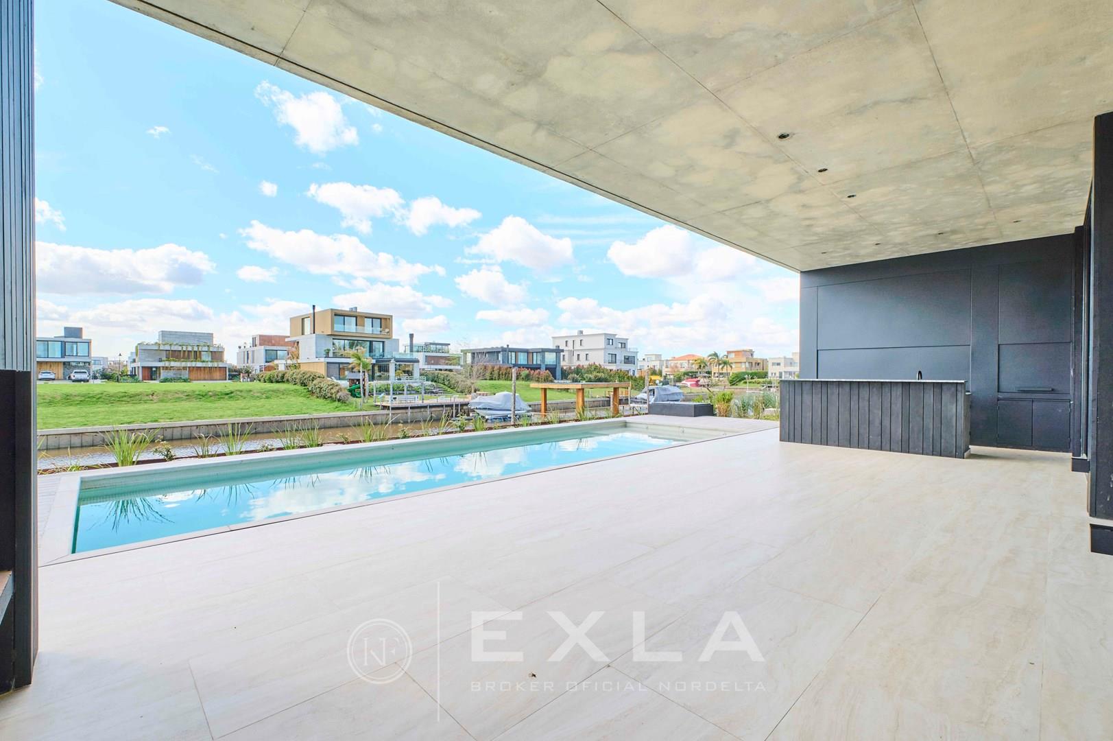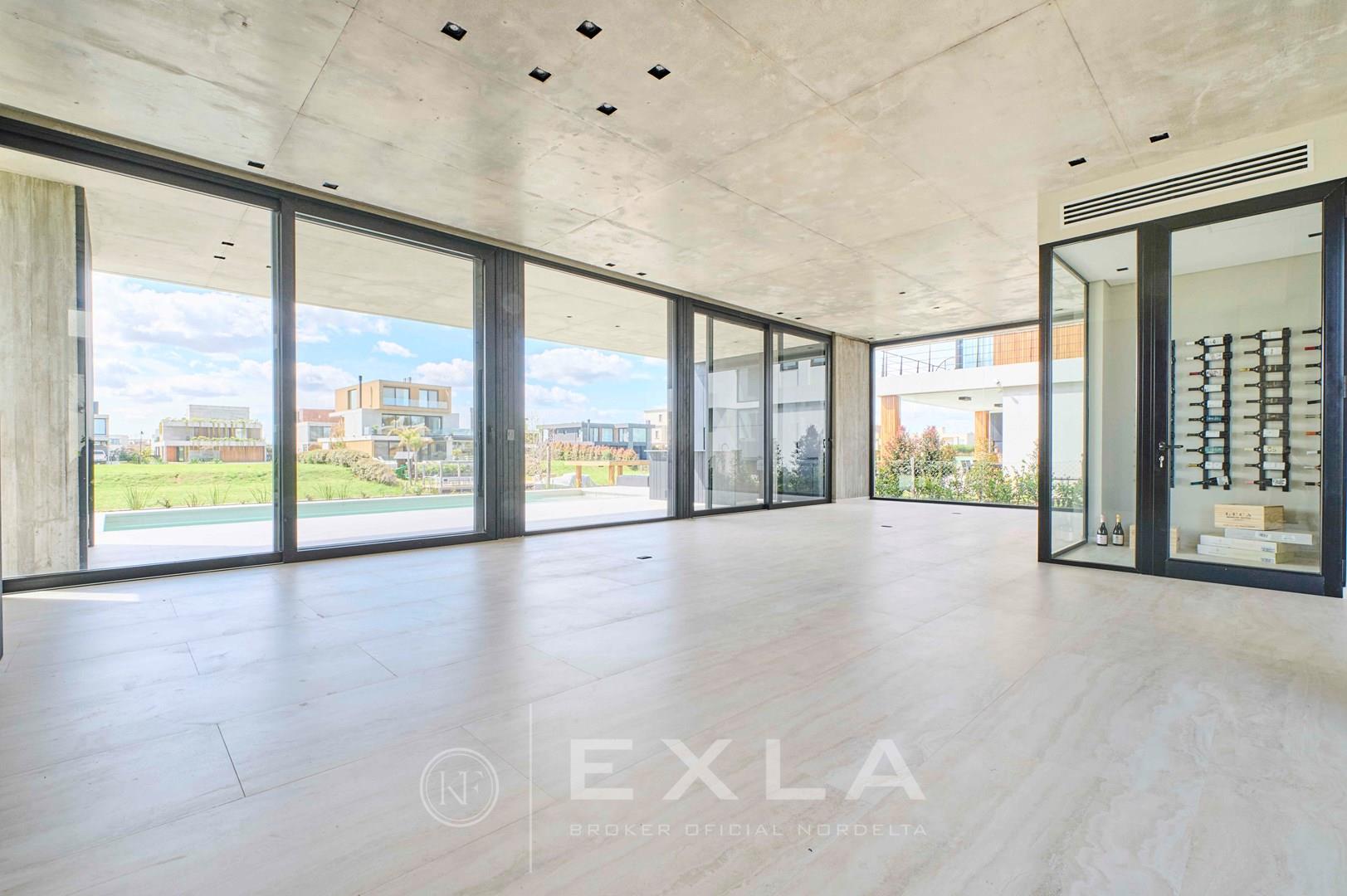 Espectacular casa de hormigon a estrenar en el Yacht sobre lote al rio con Orientacion Este. Planta Baja: Hall de entrada. Toilette de recepcion. Cocina con isla y family. Living con chimenea y comedor. Lavadero y dependencias de servicio. Galeria con parrilla y chimenea. Garage para dos autos cubiertos. Pileta de 3 x 9 revestida. Planta Alta: Master suite con dos vestidores. Escritorio o Family. 3 dormitorios en suite. Pisos de travertino. Aberturas de piso a techo. Calefaccion por losa radiante. Metros cubiertos 407,03 Metros totales 620,00 COTI en trámite a cargo del propietario. Martillero Publico CMCPSI 6692