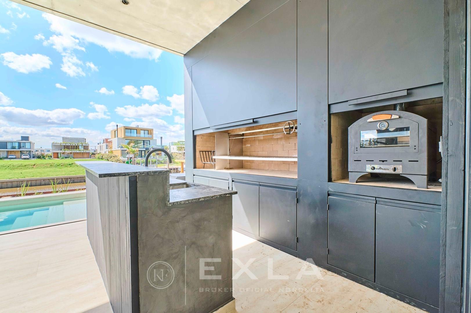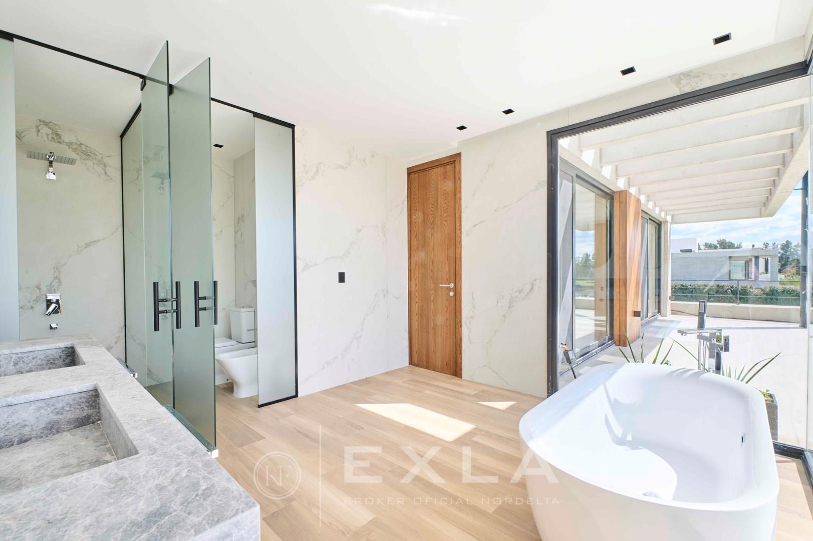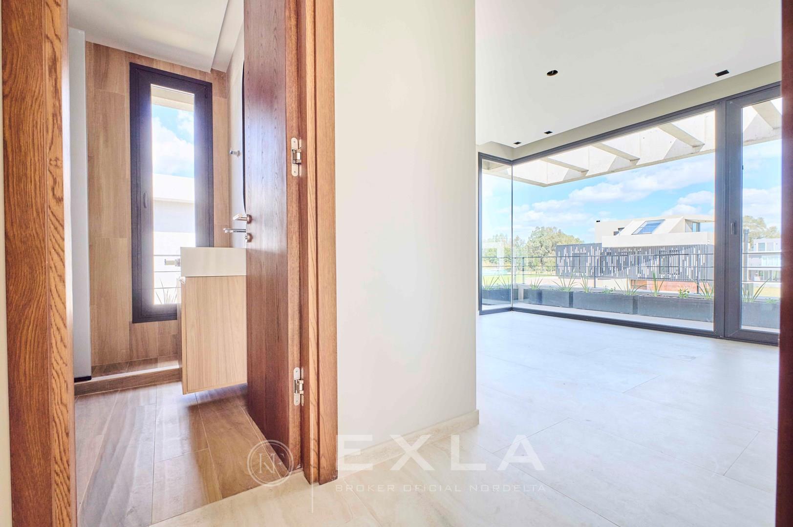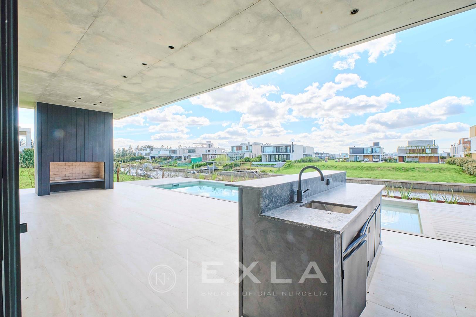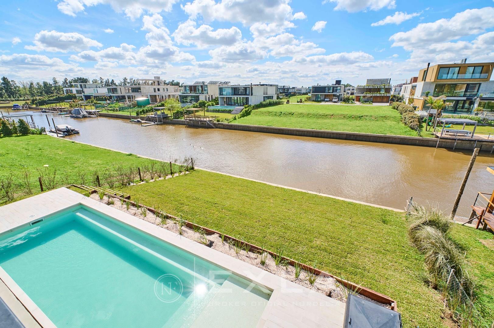 Espectacular casa de hormigon a estrenar en el Yacht sobre lote al rio con Orientacion Este. Planta Baja: Hall de entrada. Toilette de recepcion. Cocina con isla y family. Living con chimenea y comedor. Lavadero y dependencias de servicio. Galeria con parrilla y chimenea. Garage para dos autos cubiertos. Pileta de 3 x 9 revestida. Planta Alta: Master suite con dos vestidores. Escritorio o Family. 3 dormitorios en suite. Pisos de travertino. Aberturas de piso a techo. Calefaccion por losa radiante. Metros cubiertos 407,03 Metros totales 620,00 COTI en trámite a cargo del propietario. Martillero Publico CMCPSI 6692