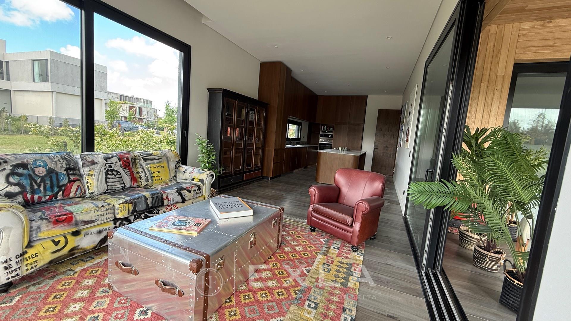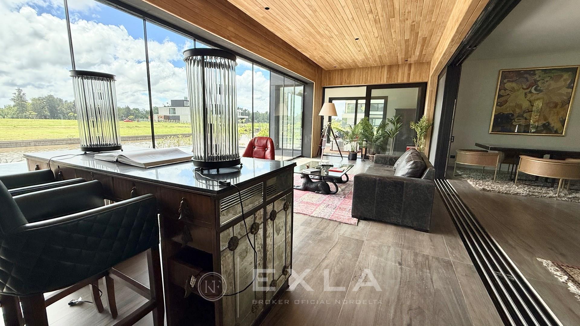 Casa en venta el Yacht Nordelta, ESPECTACULAR a estrenar, unica y diferente con detalles de diseño diferentes y novedosos. Ubicada en uno de los mejores lotes del Yacht ALTO con orientación NOR ESTE. Infinidad de detalles de terminaciones de categoría lujo y confort. Planta Baja: Gran recepcion apaisada con amplios ventanales de piso a techo y visuales hacia el Rio UNICAS. Cocina con comedor diario y espacio para esparcimiento muy cómoda y con mobiliario moderno, cochera cubierta para dos autos. Jardín con piscina con desborde infinito, parrilla y un jardÍn alucinante sobre el Rio. Planta Alta: SUITE PRINCIPAL DE DIMENSIONES EXCEPCIONALES con vestidor y baño lujoso, OTROS TRES DORMITORIOS EN SUITE todos con placard y divino Play abierto. La casa tiene terminaciones de nivel con aberturas de PVC doble vidrio en color negro, porcelanatos importados y pisos italianos simil madera. El Yacht es uno de los mejores Barrios Naúticos de la zona, amarra propia sobre tu jardin y muy cómoda salida al Rio Luján, este lote en particular esta ubicado en el mejor sector del Yacht. Casa Ofrecida por KF EXLA Inmobiliaria Oficial de Nordelta. COTI en trámite a cargo del propietario. Martillero Publico CMCPSI 6692
