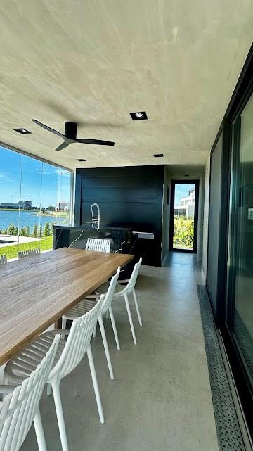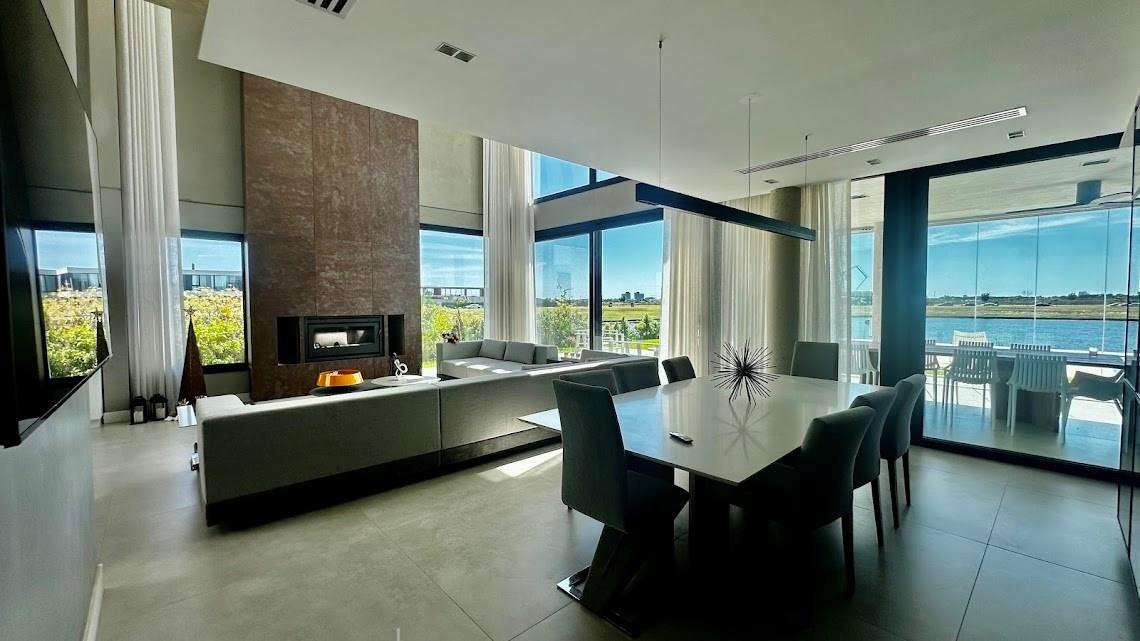 VENTA IMPORTANTE CASA UBICADA EN EL EXCLUSIVO BARRIO LOS PUENTES , NORDELTA SOBRE TERRENO DE 996M .CON COSTA DE LAGO Y VISTA ABIERTA Desarrollada en 3 plantas , cuenta con paneles solares.PISOS DE MADERA Y PORCELANATO VENTANAS CON DVH AIRES, CORTINAS Y BLACK OUT Planta Baja: hall de entrada , cochera cubierta para 2 autos , escritorio o suite en planta baja independiente con baño completo ,patio interior con muy buena vegetación y cuidado paisajismo . espectacular living con doble altura y muy lindas vistas al jardín ,lago y patio interno con muchas plantas , cuenta con una chimenea recubierta en metal oxido . comedor con mueble empotrado de diseño , cocina muy funcional , equipada con horno empotrado , anafe , micro ondas , cafetera empotrada , barra de desayunadora y de trabajo , doble heladera ,toilette , galería con cerramiento vidriado, parrilla y barra con pileta de lavado , galería exterior , baño de pileta , pileta calefaccionada con diseño y borde infinito , espacio zen , muelle muy buena parquización . habitación y baño de servicio , lavadero , doble caldera , boiler . entrada de servicio . PLANTA ALTA : hall intimo amplio muy luminoso , que distribuye las entradas a las suite , la suite principal con imponente vista al lago , muy amplia con vestidor muy cómodo y con puertas , baño principal con doble bacha , espacio de inodoro y bidet separado con puerta y ventilación y espacio de ducha y jacuzzi independiente y muy luminoso . 3 suites con baños modernos y luminosos . TERCERA PLANTA : ampliamente vidriada con increíble vista al lago, es un espacio que funciona con play room o sala de cine de generoso tamaño , que cuenta con baño . en el exterior , gran espacio de fuego y parrilla , terraza verde , Doble termotanque solares,pileta revestida ,calefaccionada y con borde infinito Las medidas son aproximadas y están sujetas a verificación con los planos correspondientes. COTI en trámite a cargo del propietario. Martillero Publico CMCPSI 6692