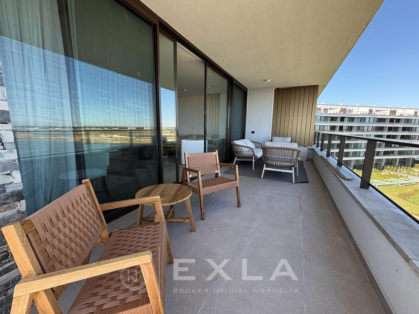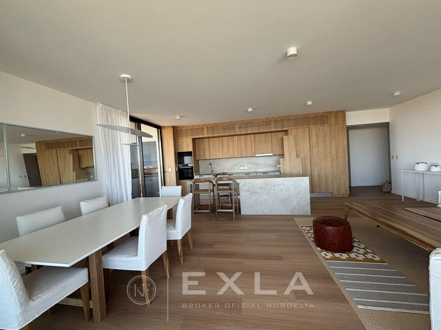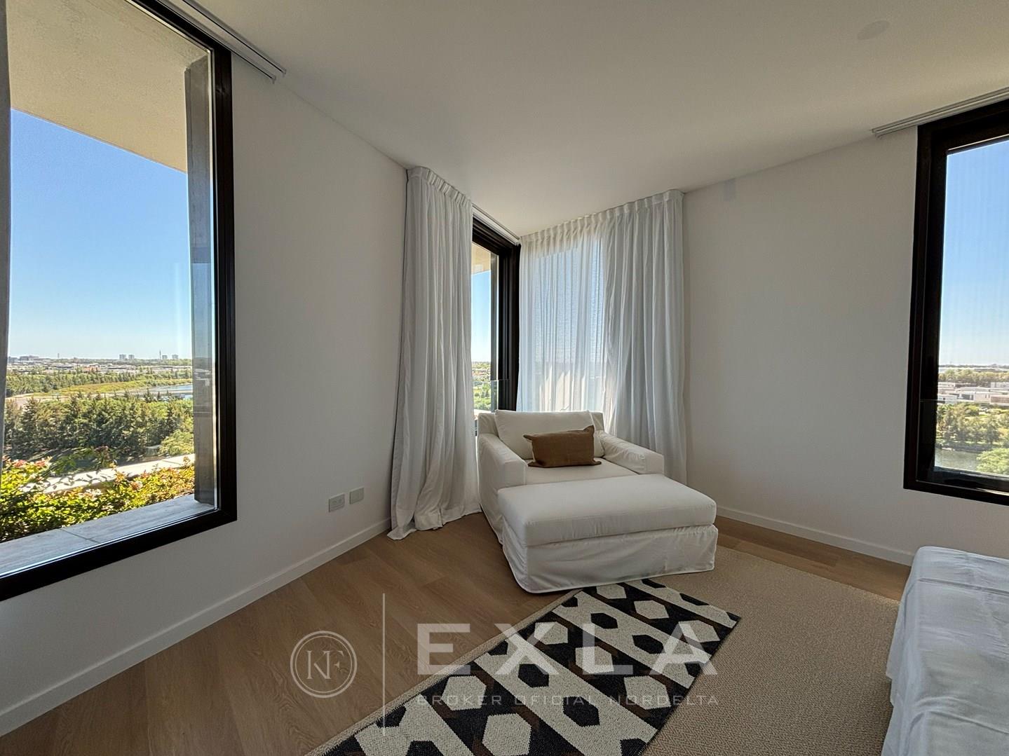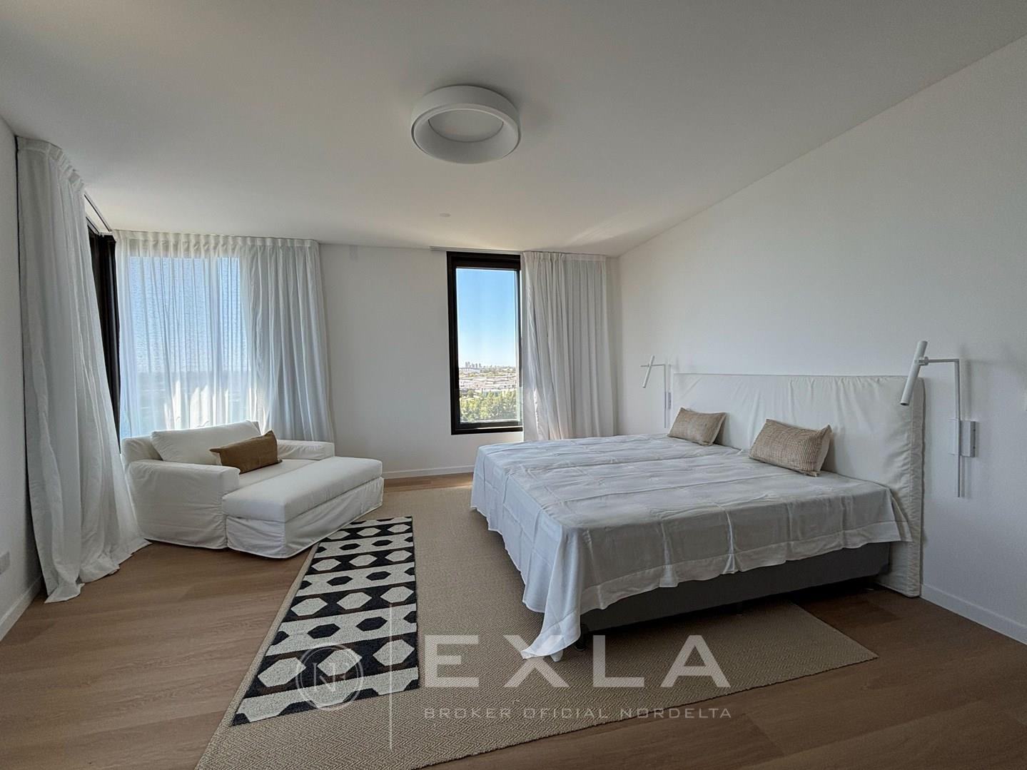 Departamento en alquiler A ESTRENAR amueblado en el mejor complejo de Nordelta - OCEANA NORDELTA - sobre el lago central con vista increible al agua desde todos los ambientes . PISO ALTO. Hall de entrada. Living comedor con cocina integrada con una espectacular vista al lago central. Gran balcon terraza con living exterior y otro balcon comunicado con el balcon terraza donde se encuentra la parrilla y la mesa para comer afuera La cocina esta toda revestida con marmol , equipada con electrodomesticos panelables y cuenta con una gran isla con mucho lugar de guardado. Gran playroom o family con baño completo que podría ser un tercer dormitorio en caso de ser necesario. . Suite junior con su vestidor y baño. El Dormitorio principal con increíble vista, muy amplio cuenta con doble banio, y doble cuarto de vestir. Lavadero, Los pisos son de madera. al igual que los muebles de la cocina y la pared de ingreso. . Calefaccion por losa radiante - Aire acondicionado central, ( . Carpinterias con dvh. El departamento se entrega total mente amoblado cortinas, muebles, heladera , lavaplatos, freezer, maquina de lavar y secarropas. Todo nuevo y disenado especialmente para este lugar. El complejo cuenta con un gimnasio equipado con equipos de primera calidad, vestuarios, dos piletas externas que dan al lago, pileta interna climatizada, lugar de juegos con mesa de pool y sum con mesas y livings. sala de yoga y cuenta tambien con dos coworking., Salon para usos multiples , Los amenities del departamento son fuera de serie, Dos cocheras fijas , y baulera COTI en trámite a cargo del propietario. Martillero Publico CMCPSI 6692