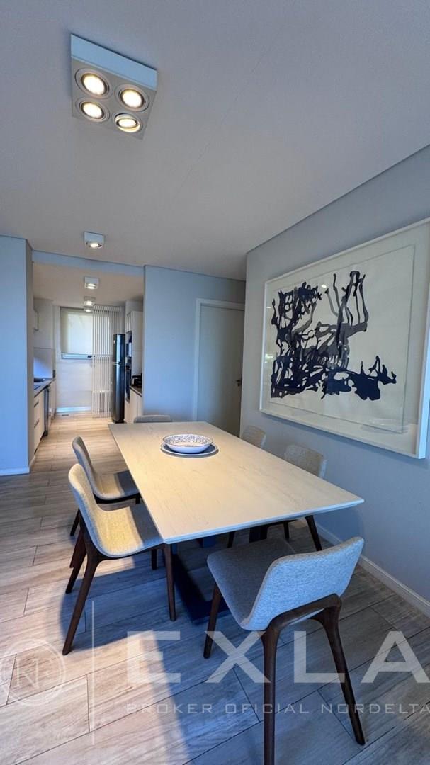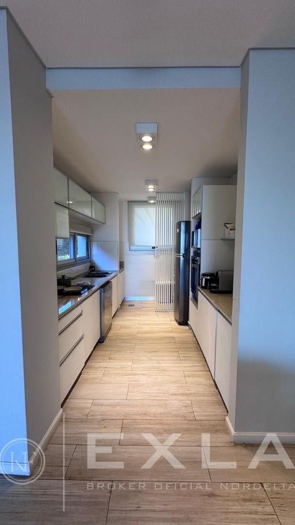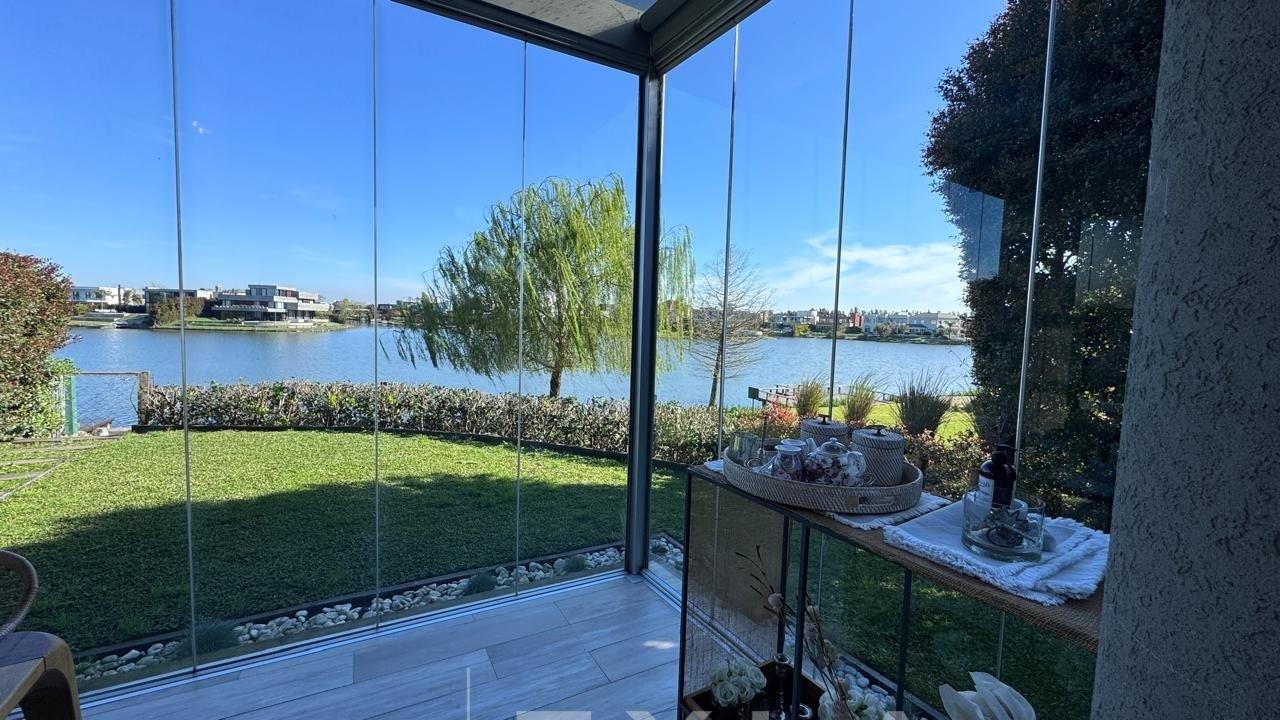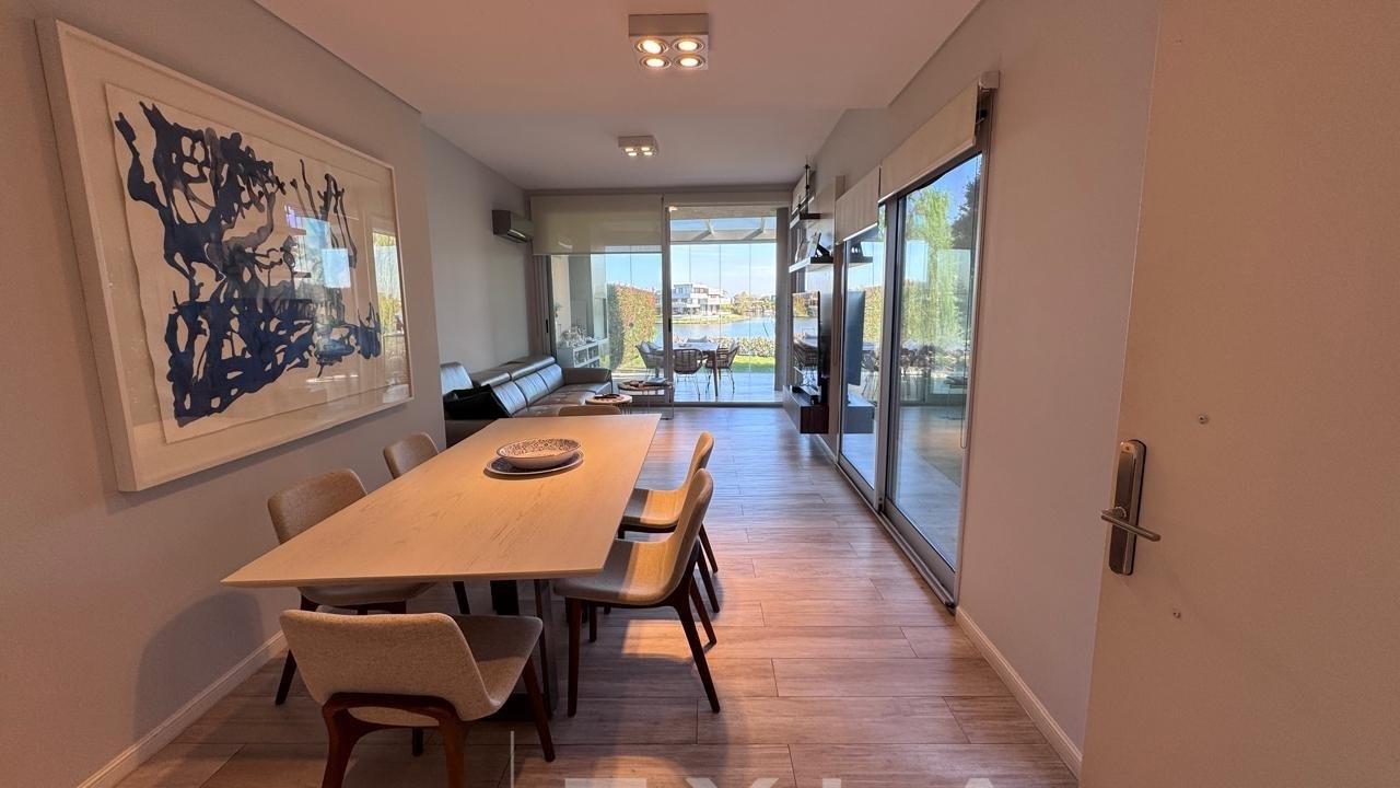 Departamento en Venta en Aqua Golf Nordelta en esquina increíble Duplex con jardín propio y una vista espectacular sobre el lago central, acceso privado con entrada independiente. Planta Baja: Living comedor con vista al Lago, cocina integrada con lavadero, dependencia de servicio y un dormitorio o play con su baño privado. Gran galería con cerramiento de vidrio tipo reiki y parrilla propia. Planta Alta Suite principal con terraza propia y una vista alucinante al Lago, vestidor y baño moderno con doble bacha, otros dos dormitorios que comparten un baño. Calefacción central por losa radiante de regulación individual, aires en todos los ambientes. El departamento es único por su ubicación, estado y vistas, especial para quienes desean las comodidades de una casa, pero en un complejo de departamento con excelentes amenities, seguridad y confort. Excelente estado. COTI en trámite a cargo del propietario. Martillero Publico CMCPSI 6692