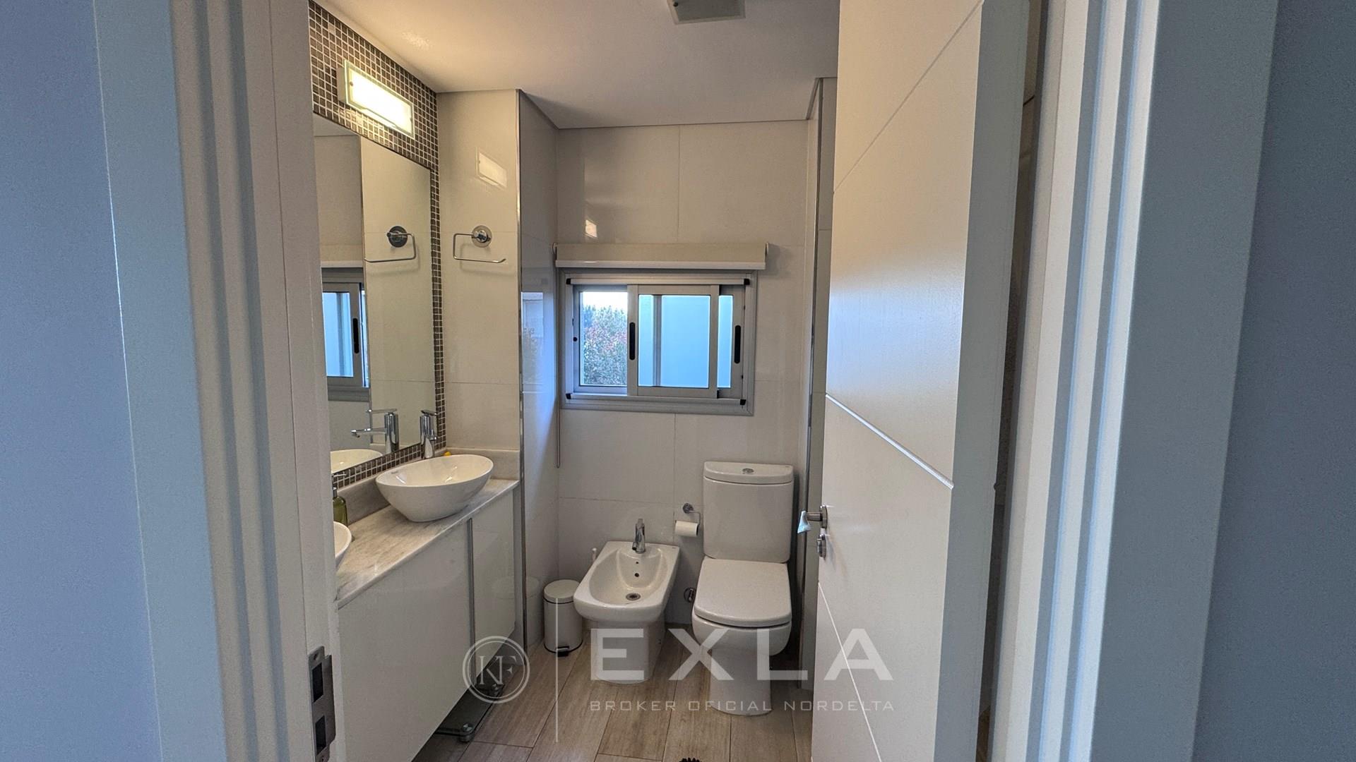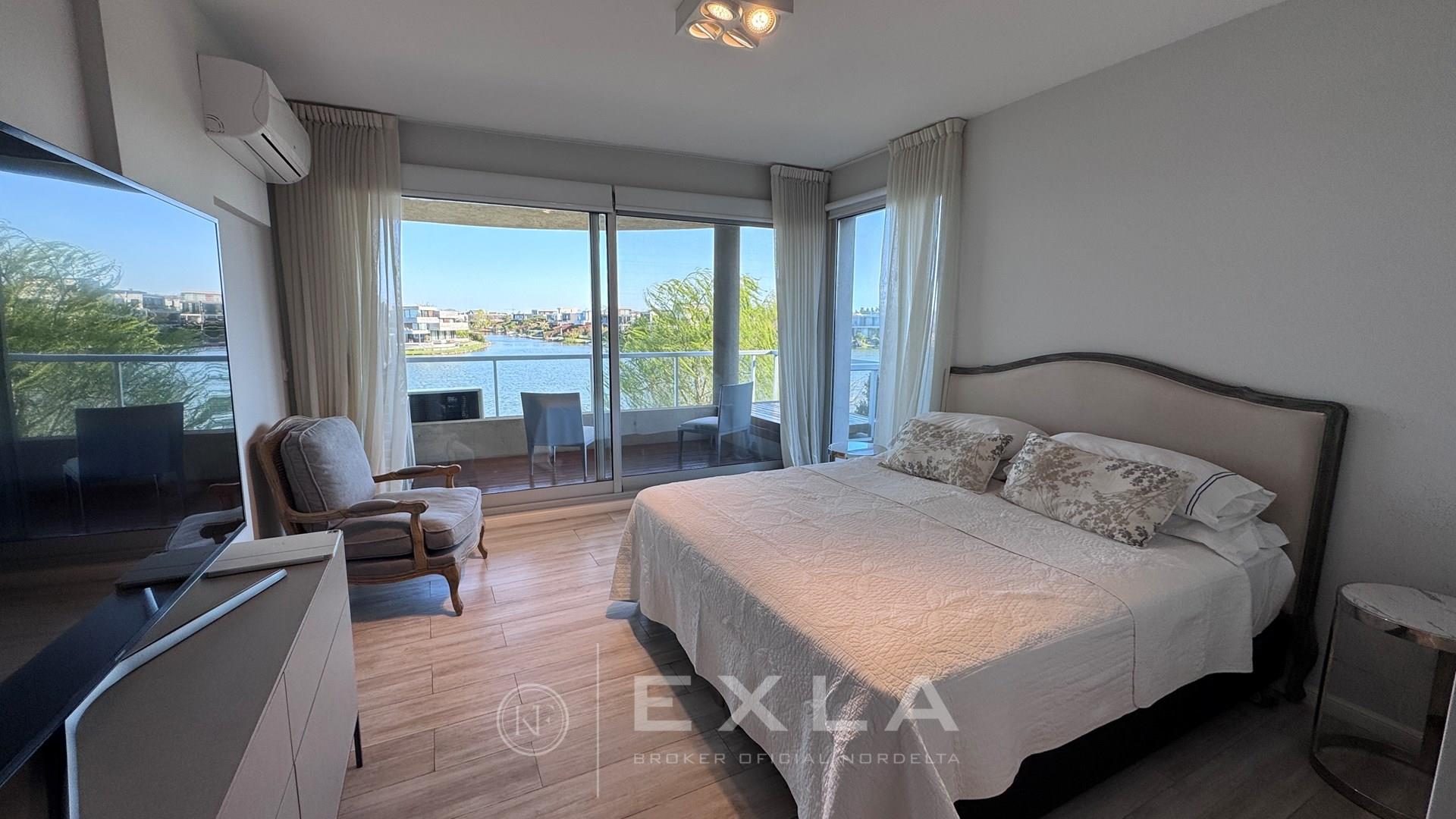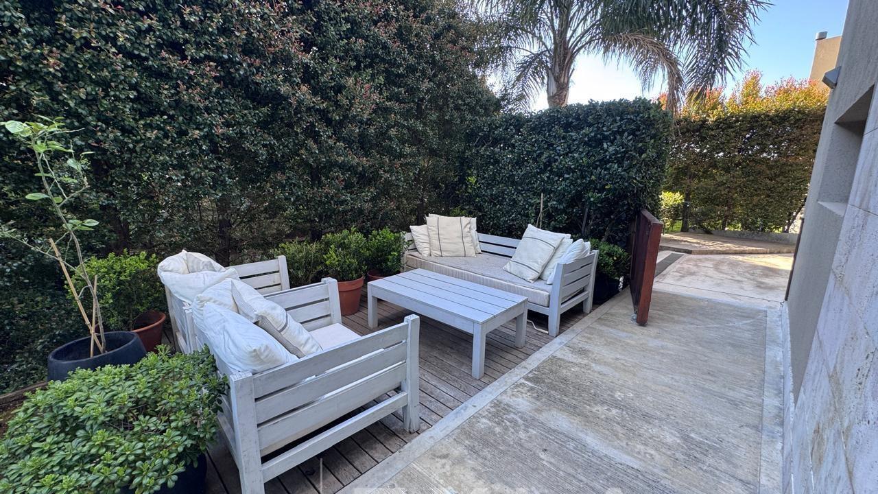 Departamento en Venta en Aqua Golf Nordelta en esquina increíble Duplex con jardín propio y una vista espectacular sobre el lago central, acceso privado con entrada independiente. Planta Baja: Living comedor con vista al Lago, cocina integrada con lavadero, dependencia de servicio y un dormitorio o play con su baño privado. Gran galería con cerramiento de vidrio tipo reiki y parrilla propia. Planta Alta Suite principal con terraza propia y una vista alucinante al Lago, vestidor y baño moderno con doble bacha, otros dos dormitorios que comparten un baño. Calefacción central por losa radiante de regulación individual, aires en todos los ambientes. El departamento es único por su ubicación, estado y vistas, especial para quienes desean las comodidades de una casa, pero en un complejo de departamento con excelentes amenities, seguridad y confort. Excelente estado. COTI en trámite a cargo del propietario. Martillero Publico CMCPSI 6692